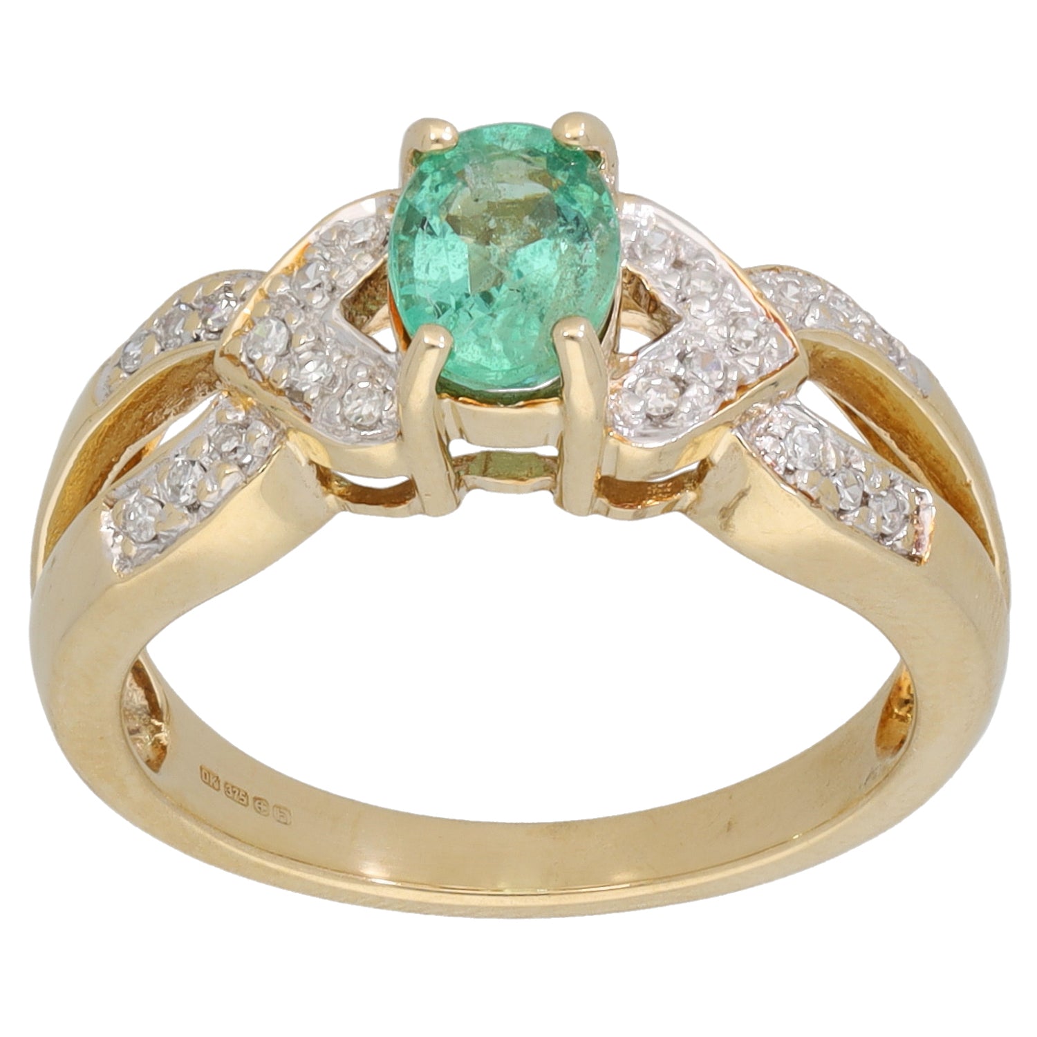 9ct Gold Emerald & 0.11ct Diamond Dress/Cocktail Ring Size N