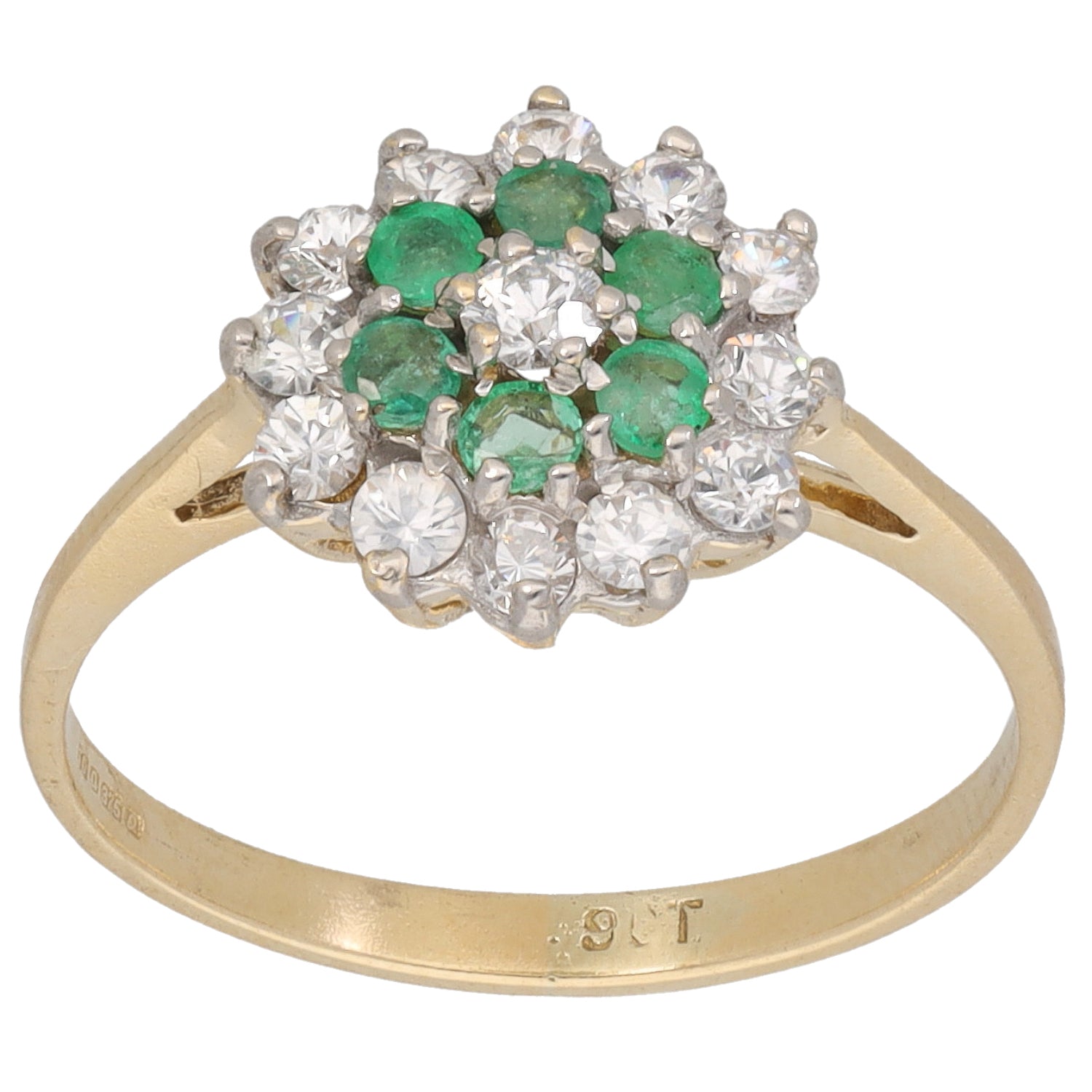 9ct Gold Emerald & Cubic Zirconia Dress/Cocktail Ring Size M