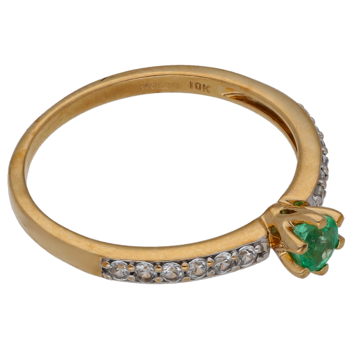 9ct Gold Emerald & Sapphire Single Stone Ring With Accents Size N