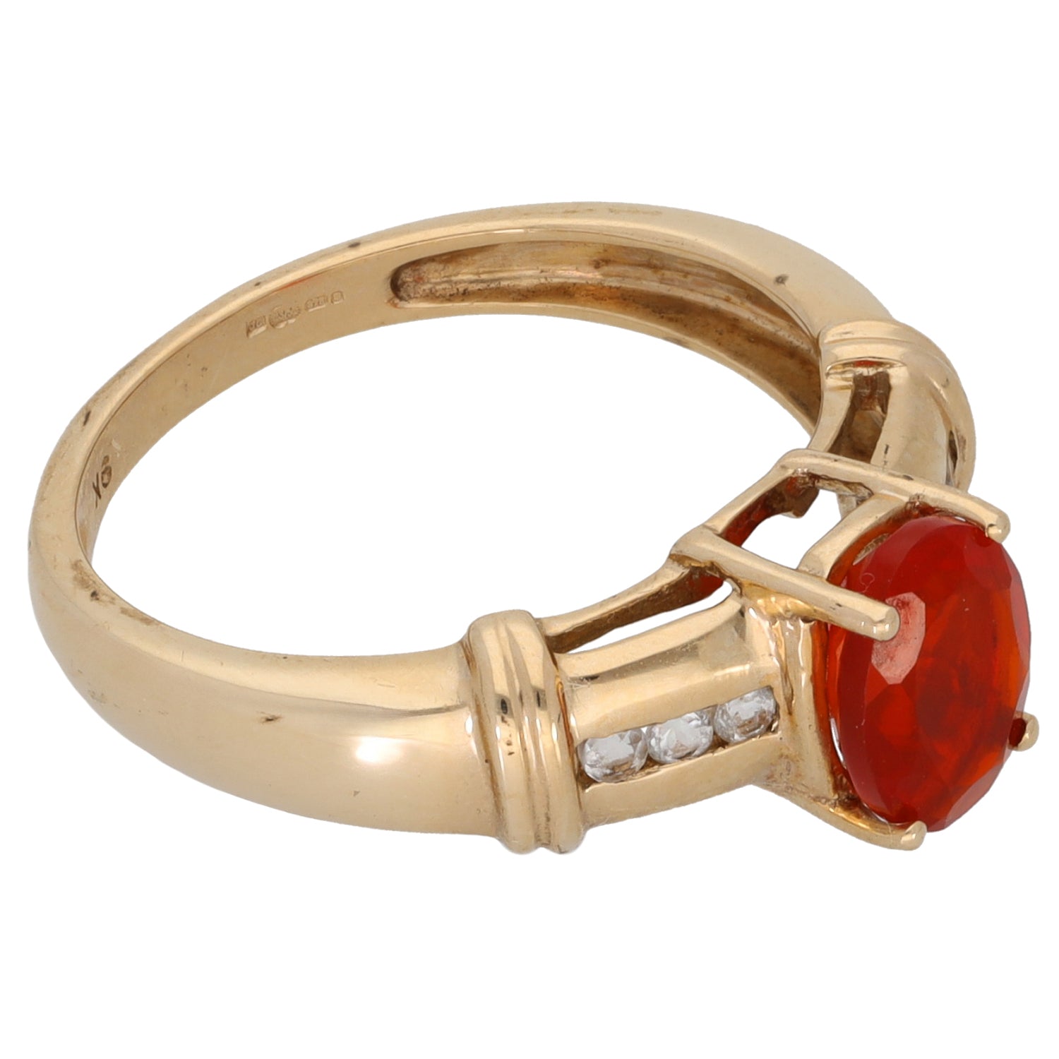 9ct Gold Fire Opal & Sapphire Single Stone Ring with Accent Stones Size O