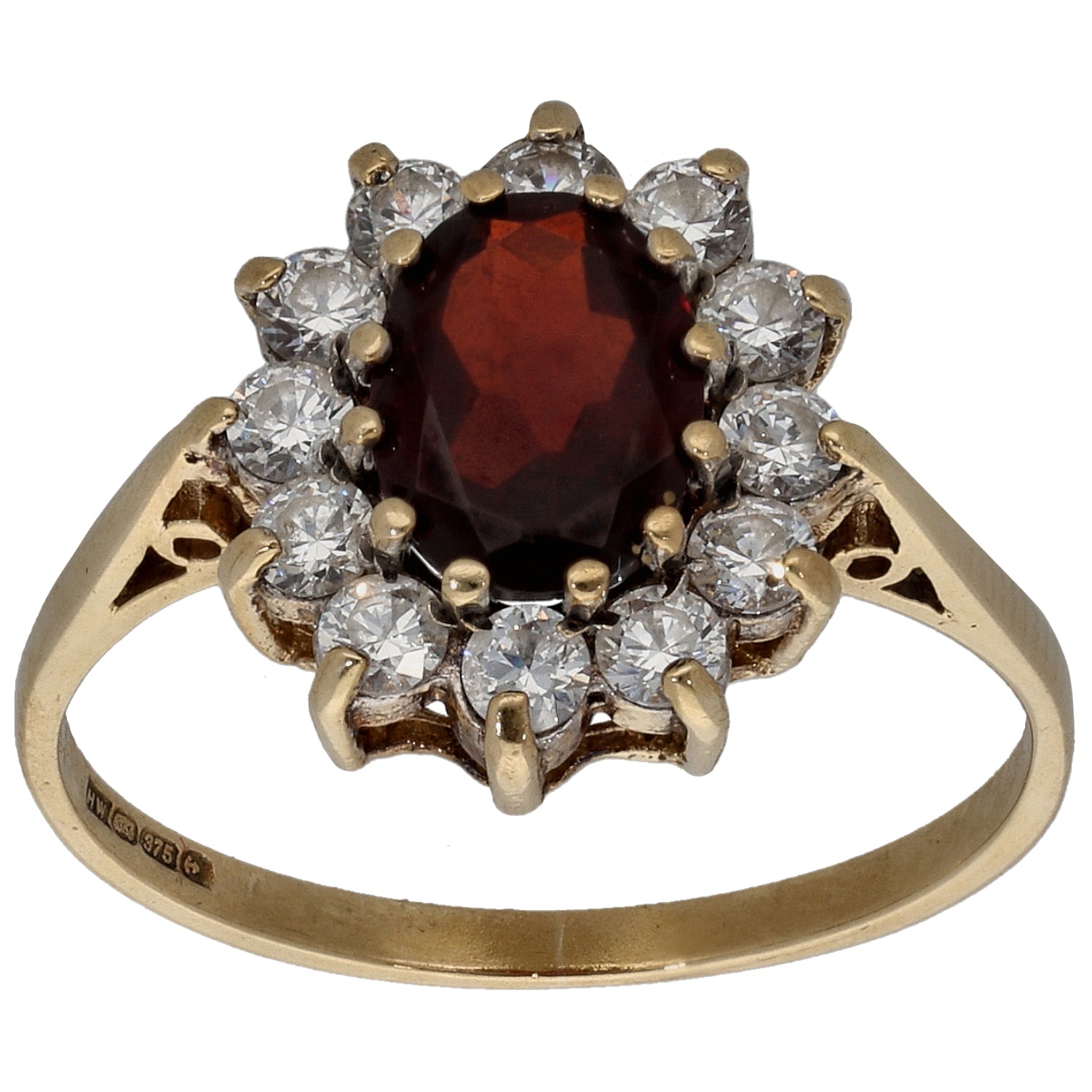 9ct Gold Garnet & Cubic Zirconia Dress/Cocktail Ring Size N