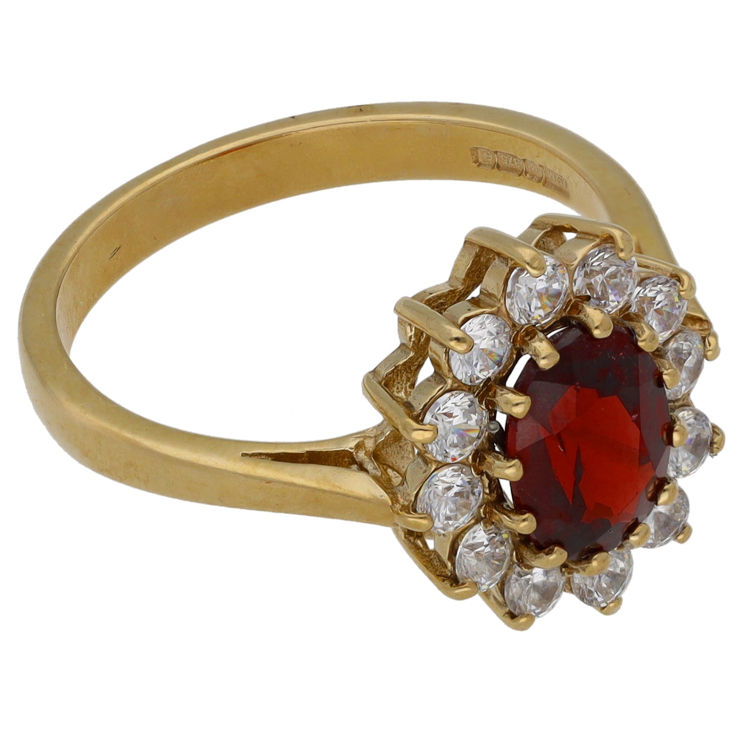9ct Gold Garnet & Cubic Zirconia Dress/Cocktail Ring Size O