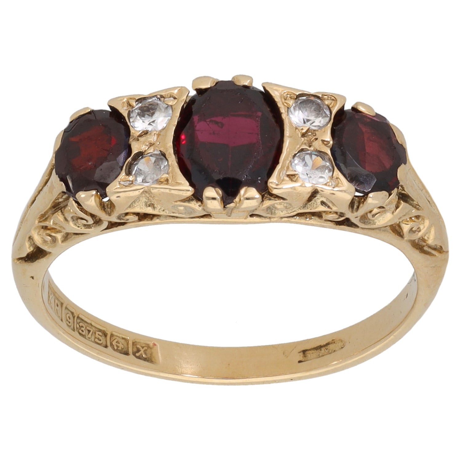 9ct Gold Garnet & Cubic Zirconia Half Eternity Ring Size P