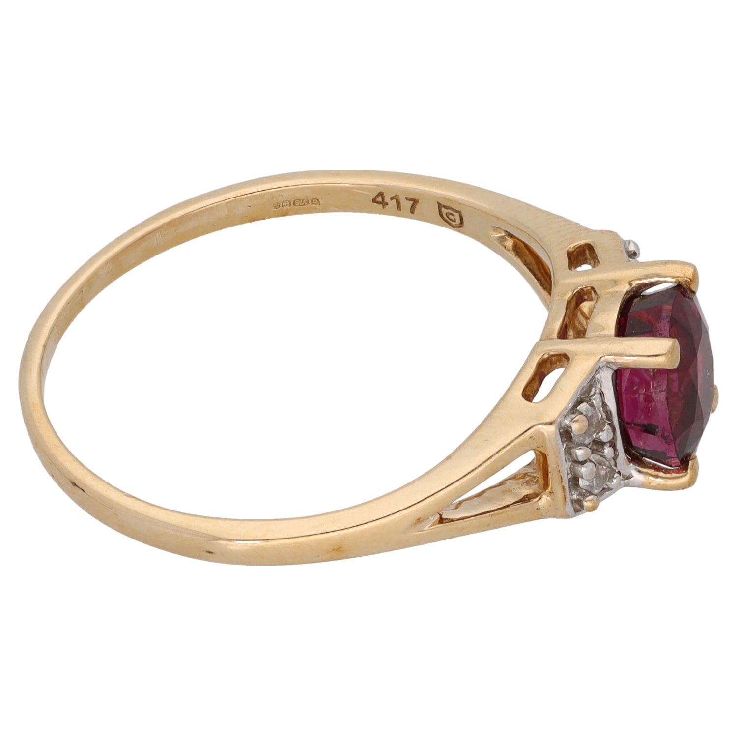9ct Gold Garnet & Imitation Gems Single Stone Ring with Accent Stones Size R