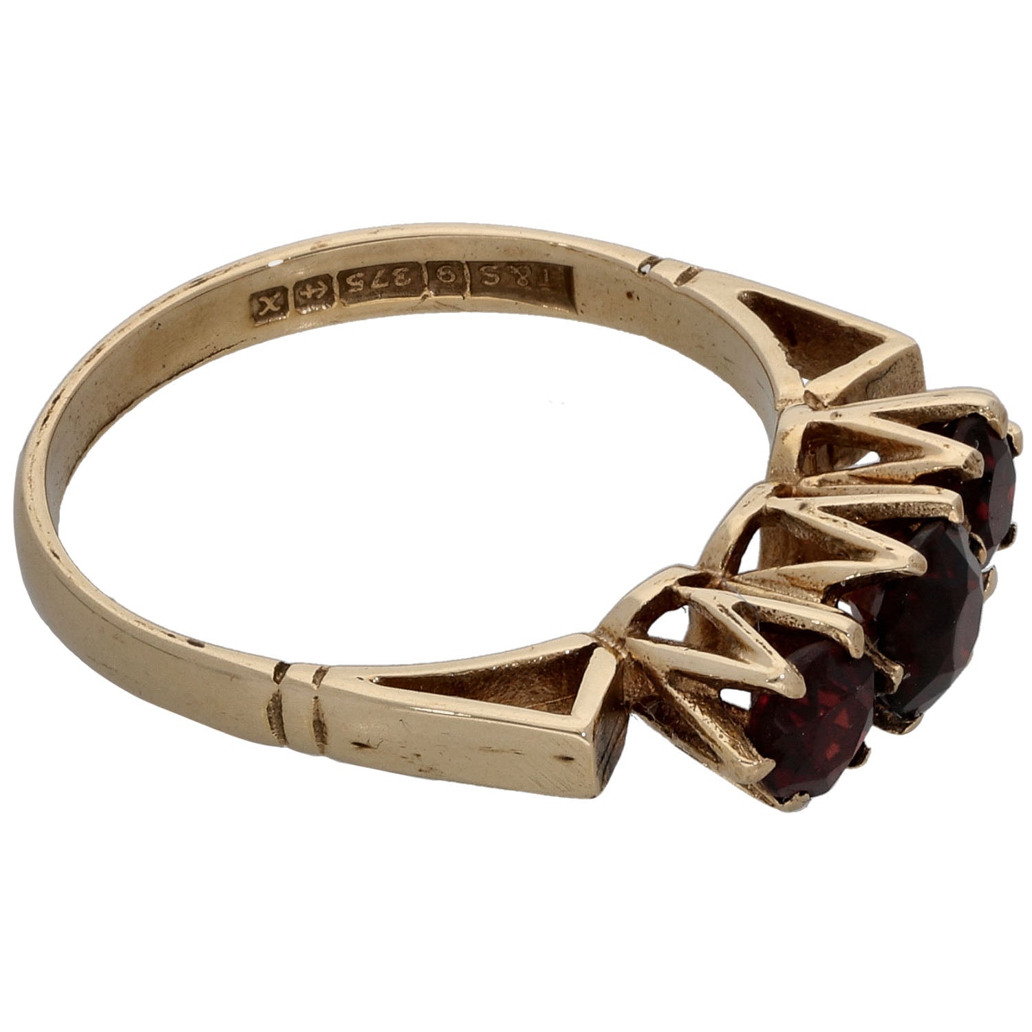 9ct Gold Garnet Three Stone Ring Size M
