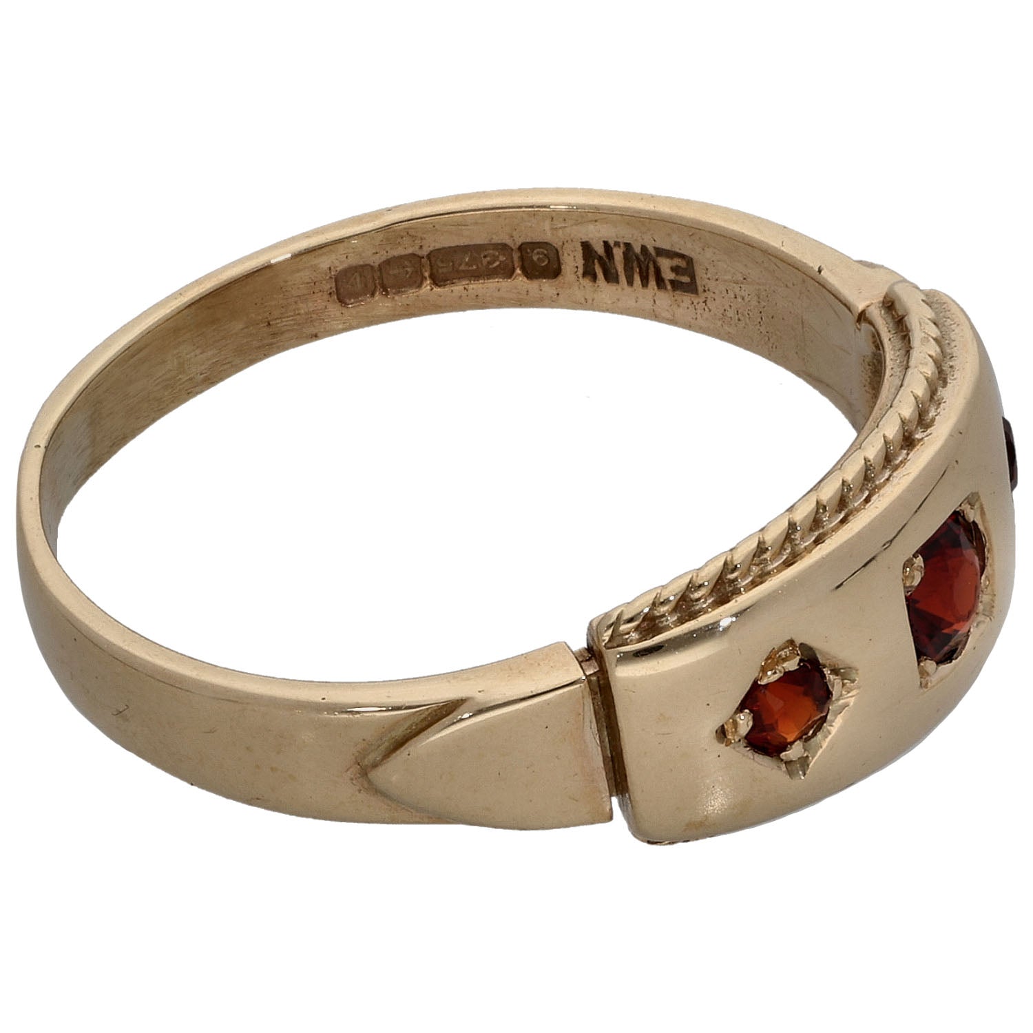 9ct Gold Garnet Three Stone Ring Size R