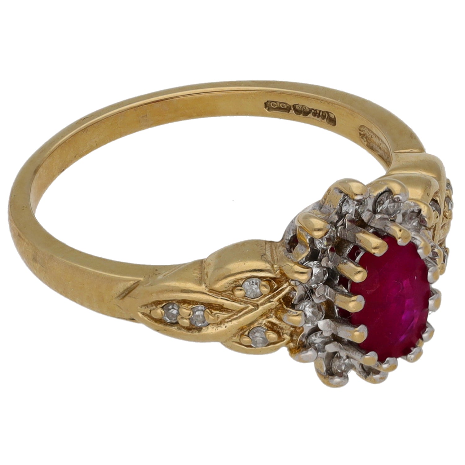 9ct Gold Glass Filled Ruby & 0.15ct Diamond Dress/Cocktail Ring Size M