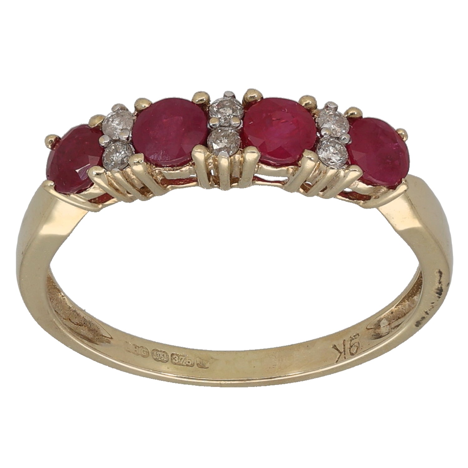 9ct Gold Glass Filled Ruby & 0.06ct Diamond Half Eternity Ring Size N