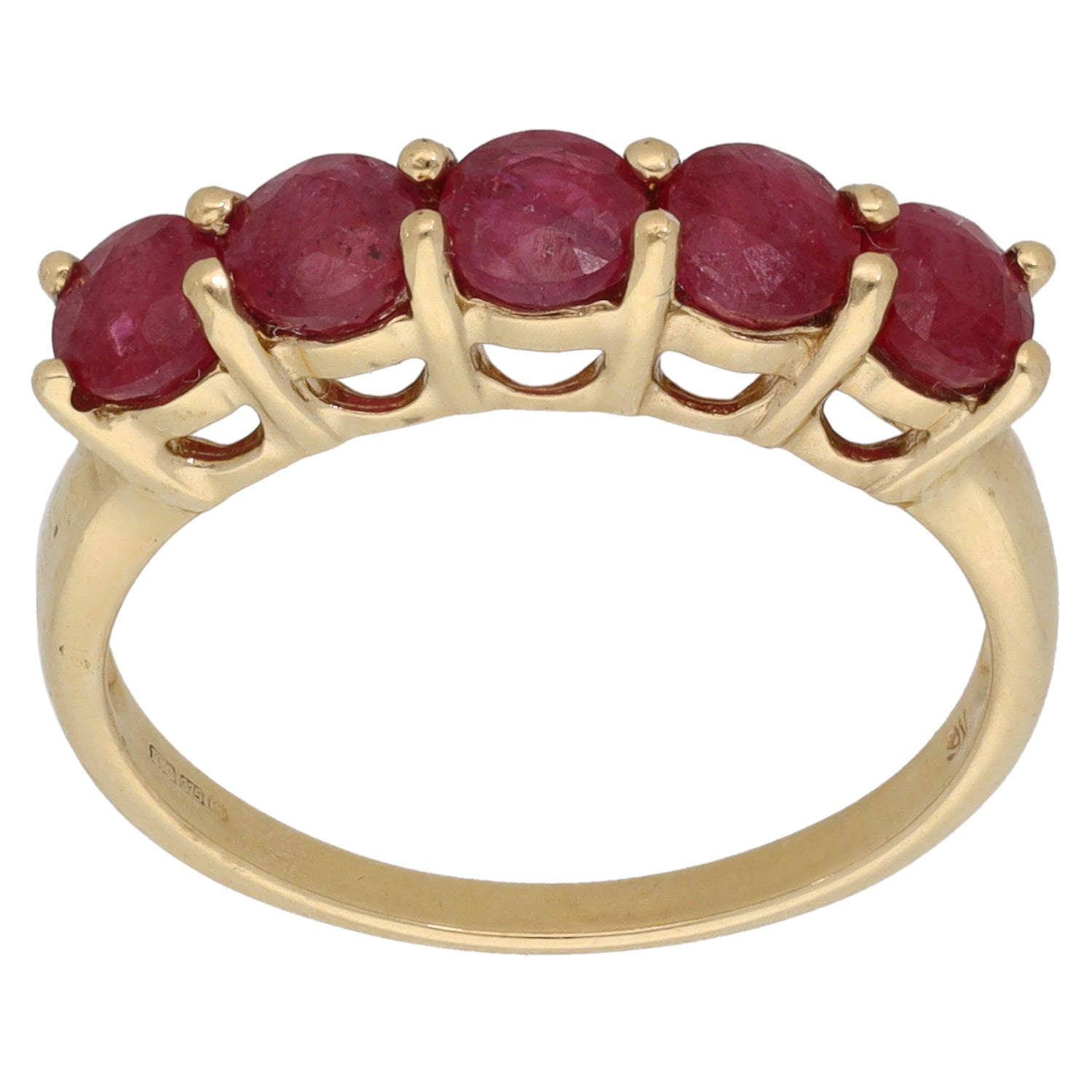 9ct Gold Glass Filled Ruby Half Eternity Ring Size N