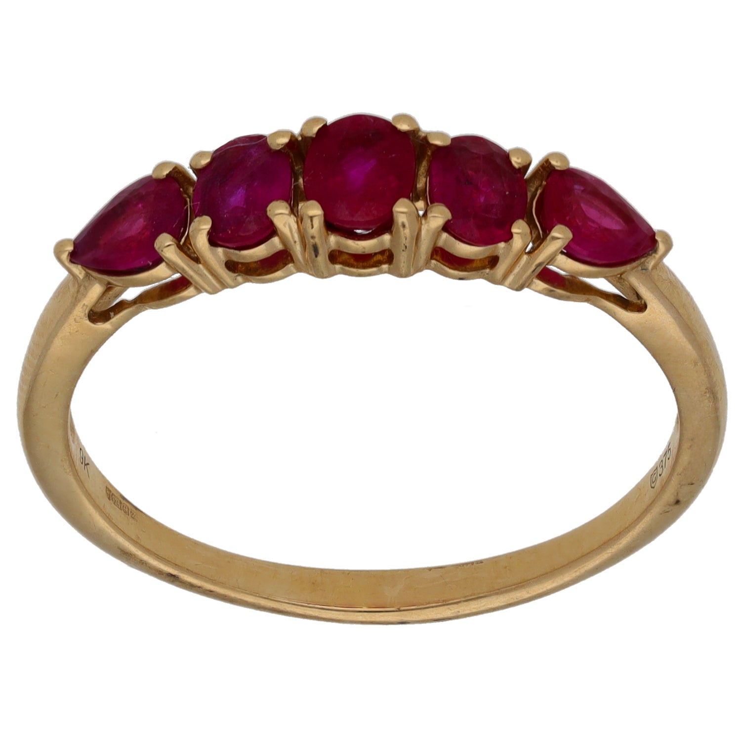 9ct Gold Glass Filled Ruby Half Eternity Ring Size U