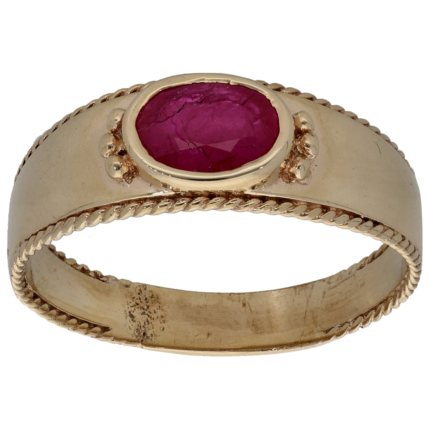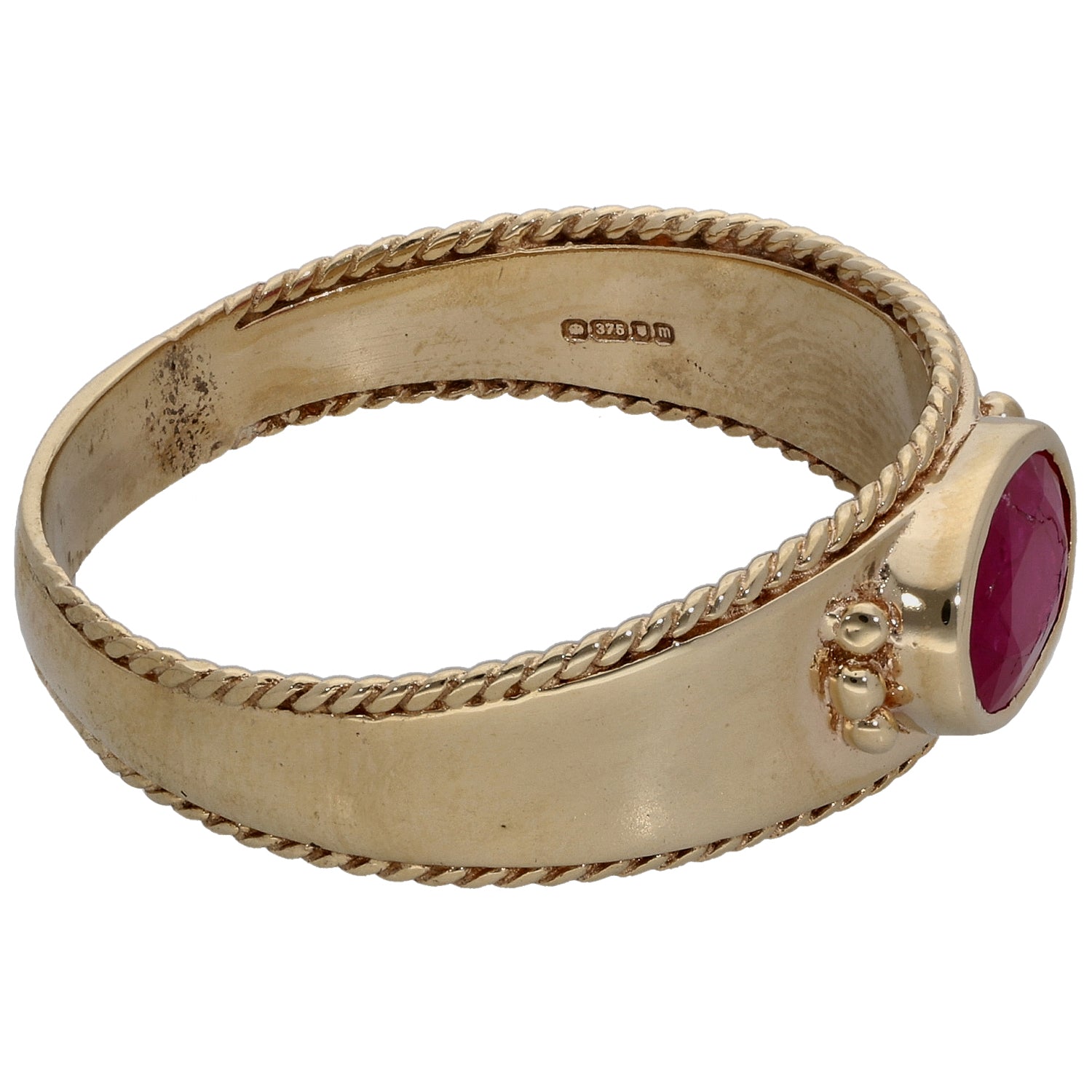 9ct Gold Glass Filled Ruby Single Stone Ring Size X
