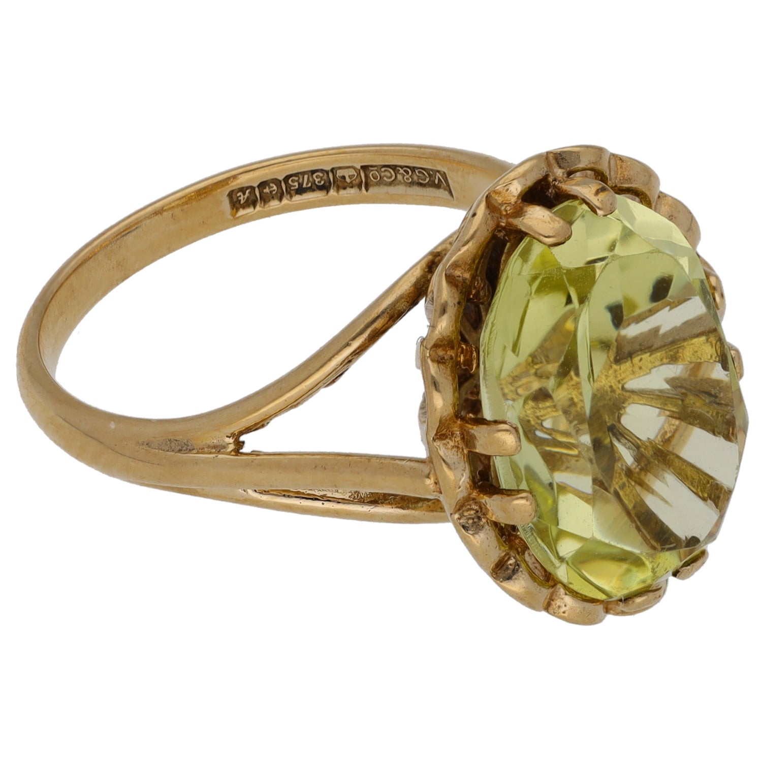 9ct Gold Green Quartz Single Stone Ring Size M