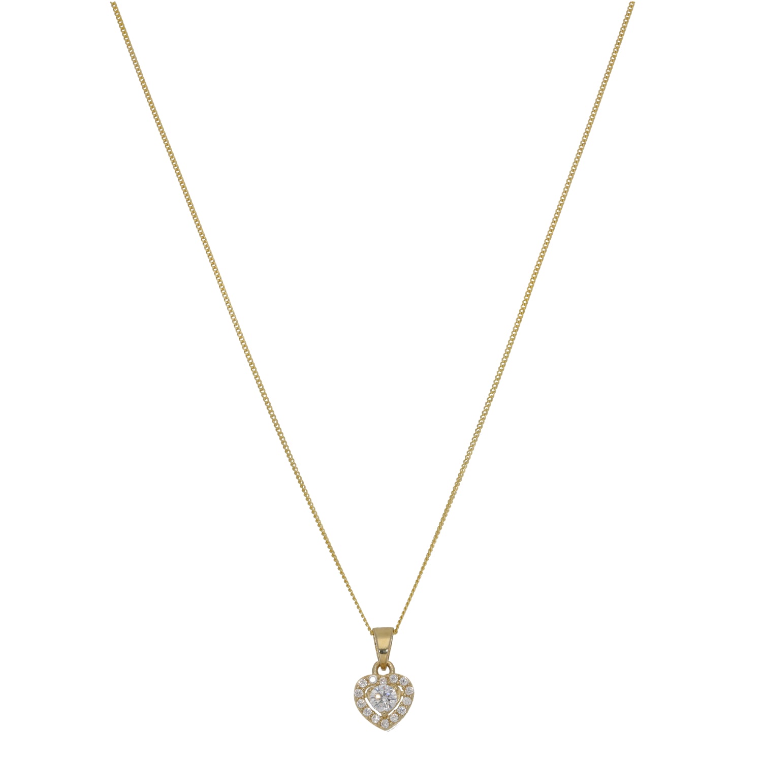 New 9ct Gold Cubic Zirconia Halo 7.35mm Heart Pendant with Chain 18"