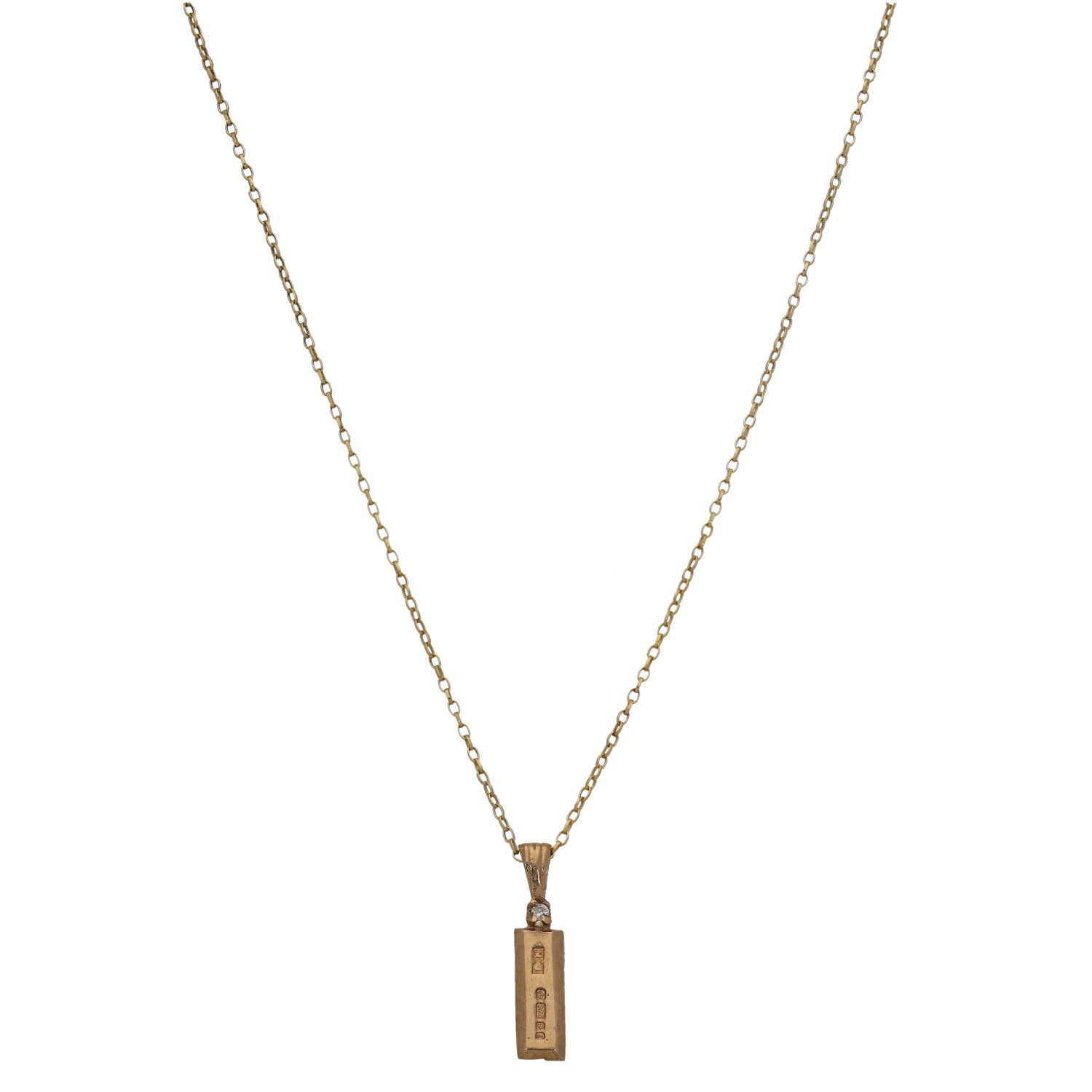 9ct Gold 0.02ct Diamond Ingot Pendant With Chain