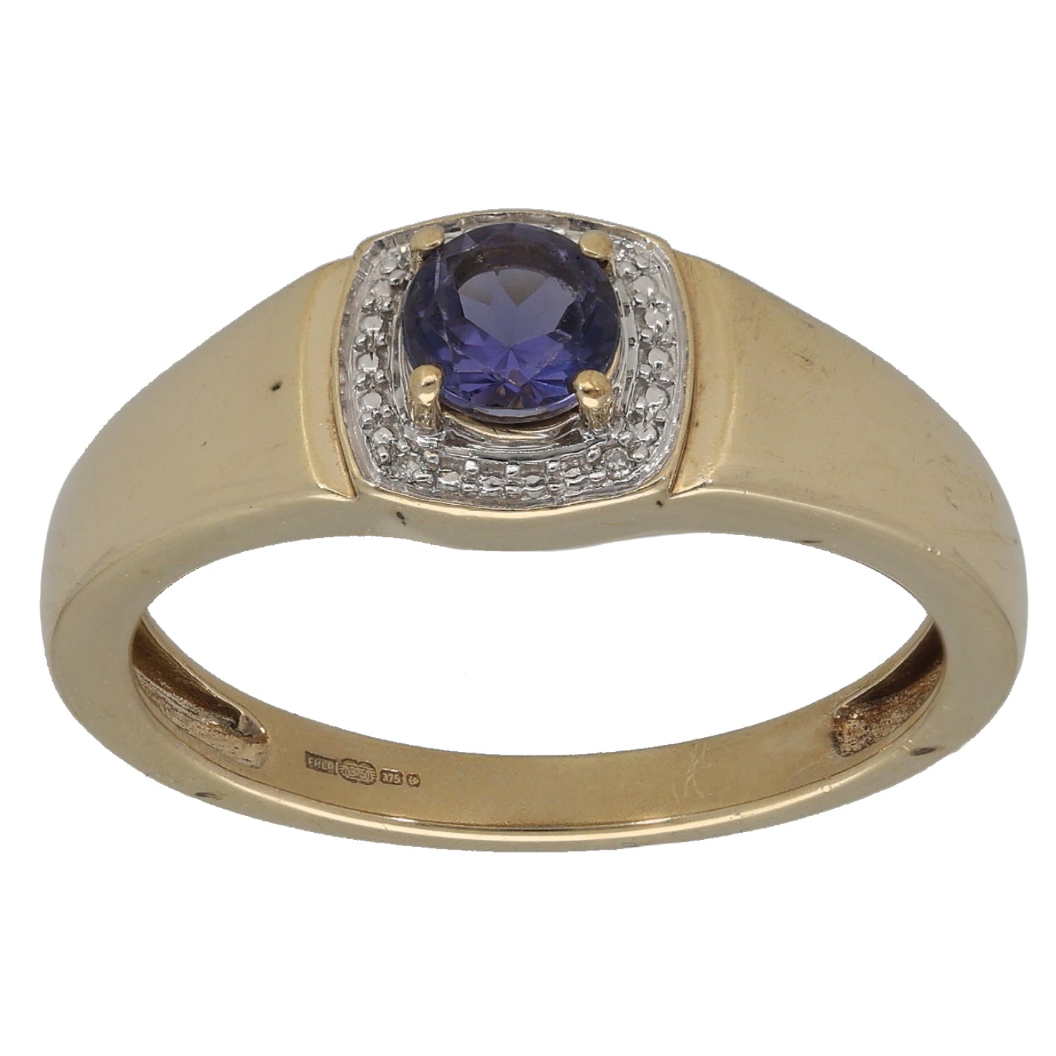 9ct Gold Iolite & 0.02ct Diamond Dress/Cocktail Ring Size S