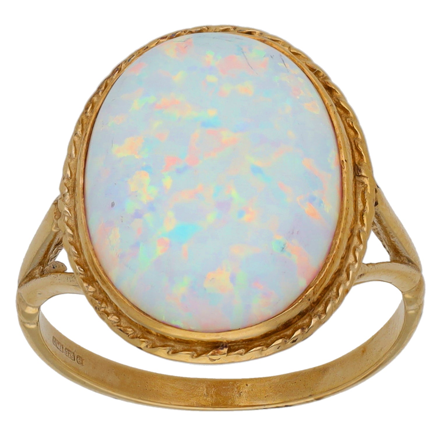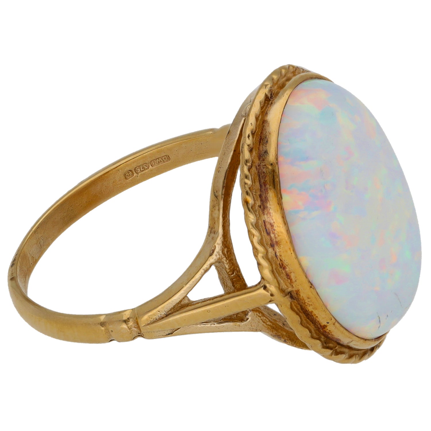 9ct Gold Man Made Opal Single Stone Ring Size N