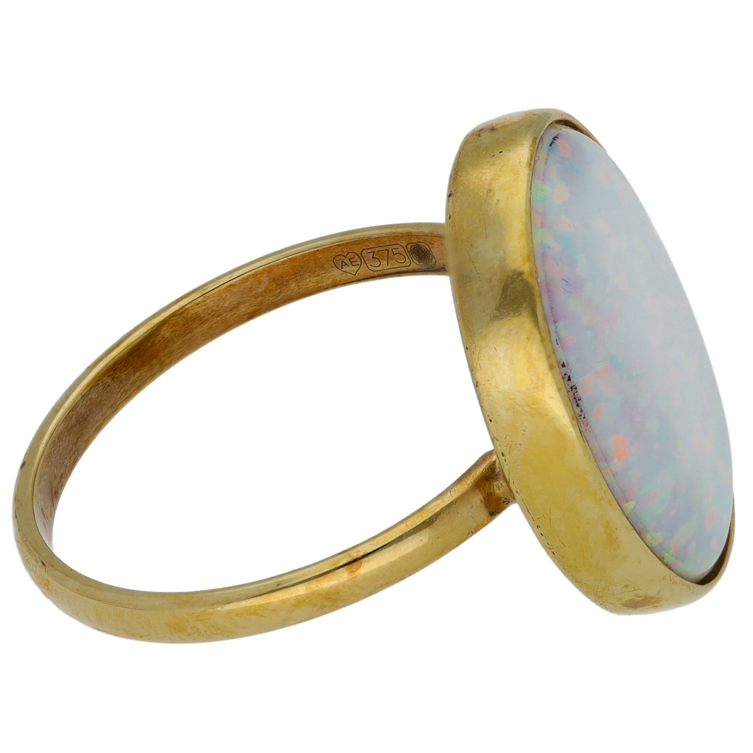 9ct Gold Man Made Opal Single Stone Ring Size S