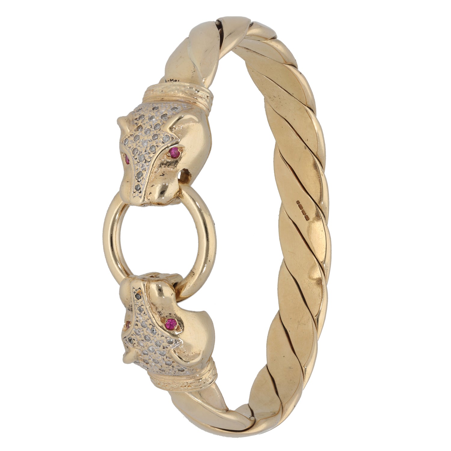 9ct Gold Man Made Ruby & 0.25ct Diamond Hinged/Clasp Bangle