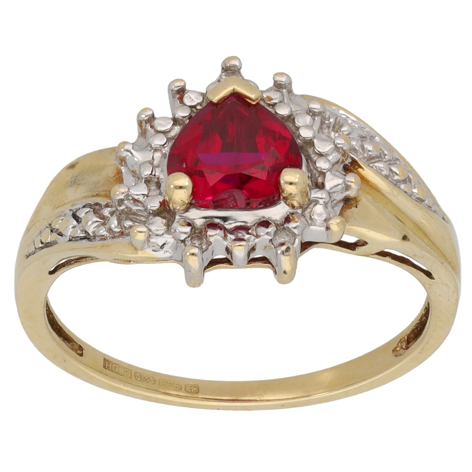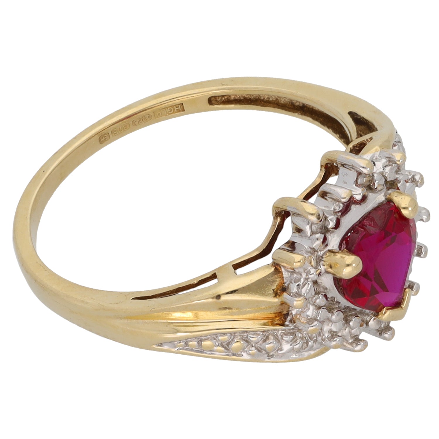 9ct Gold Man Made Ruby & 0.015ct Diamond Dress/Cocktail Ring Size O