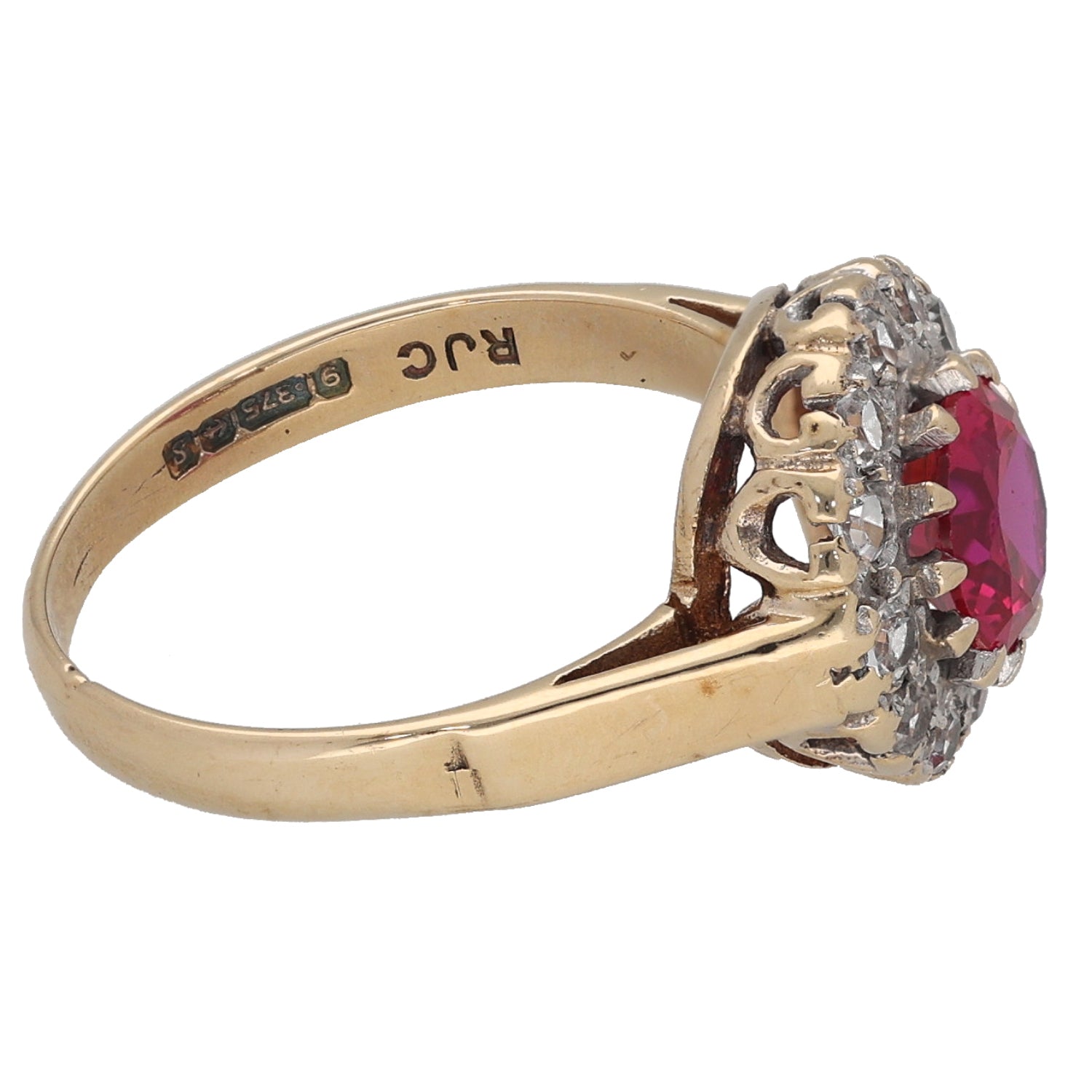 9ct Gold Man Made Ruby & Cubic Zirconia Dress/Cocktail Ring Size L