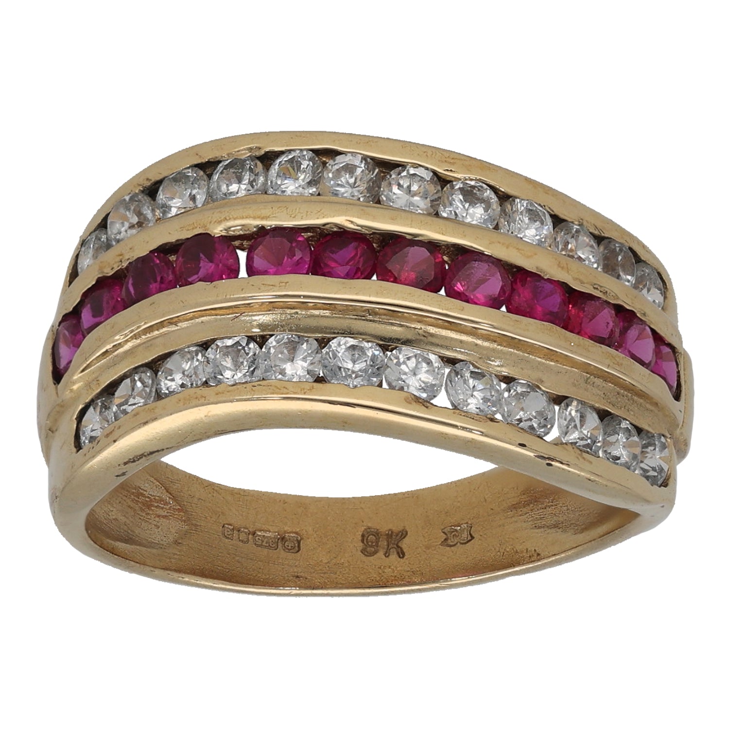 9ct Gold Man Made Ruby & Cubic Zirconia Dress/Cocktail Ring Size P