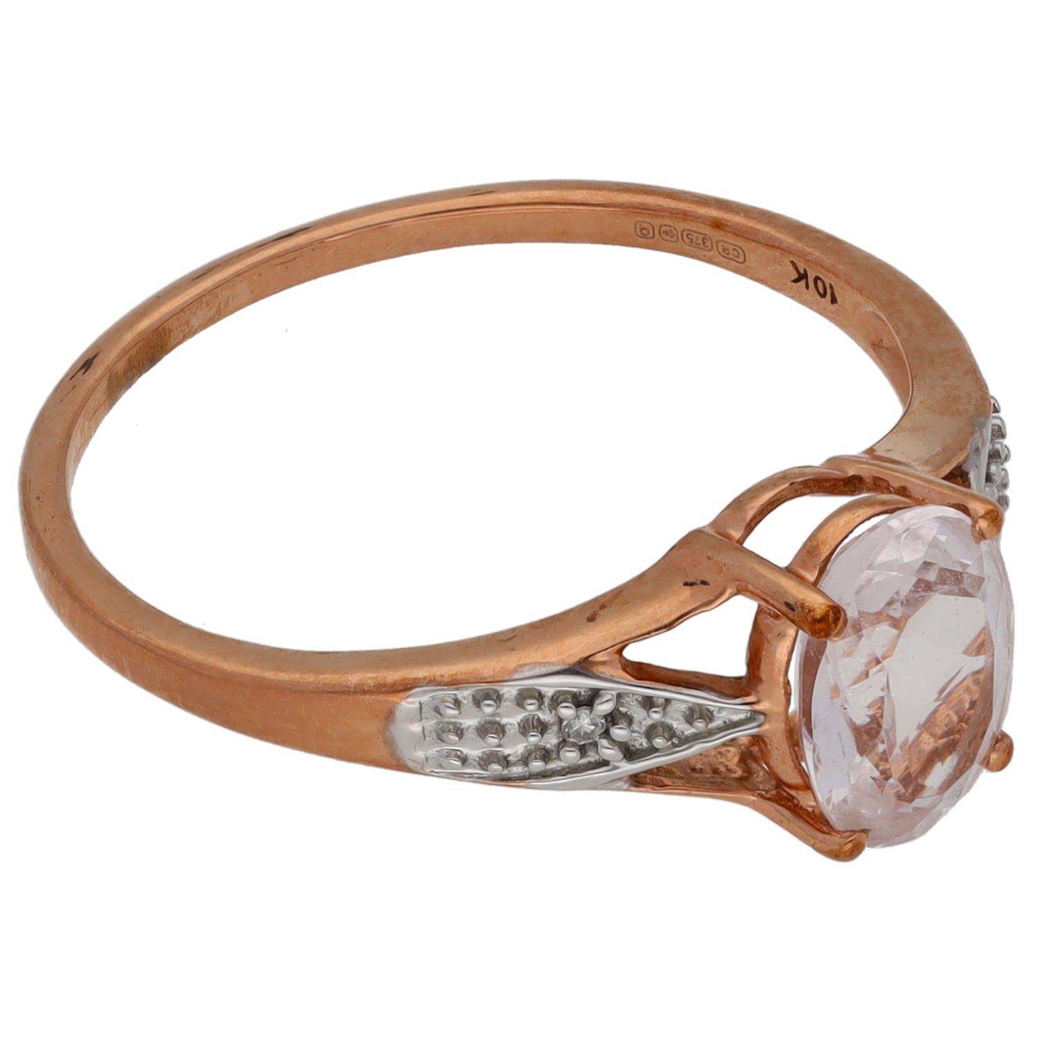 9ct Gold Morganite & 0.01ct Diamond Single Stone Ring with Accent Stones Size P