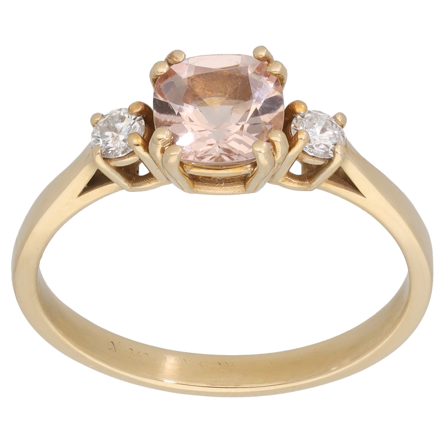 9ct Gold Morganite & 0.20ct Diamond Trilogy Ring Size V