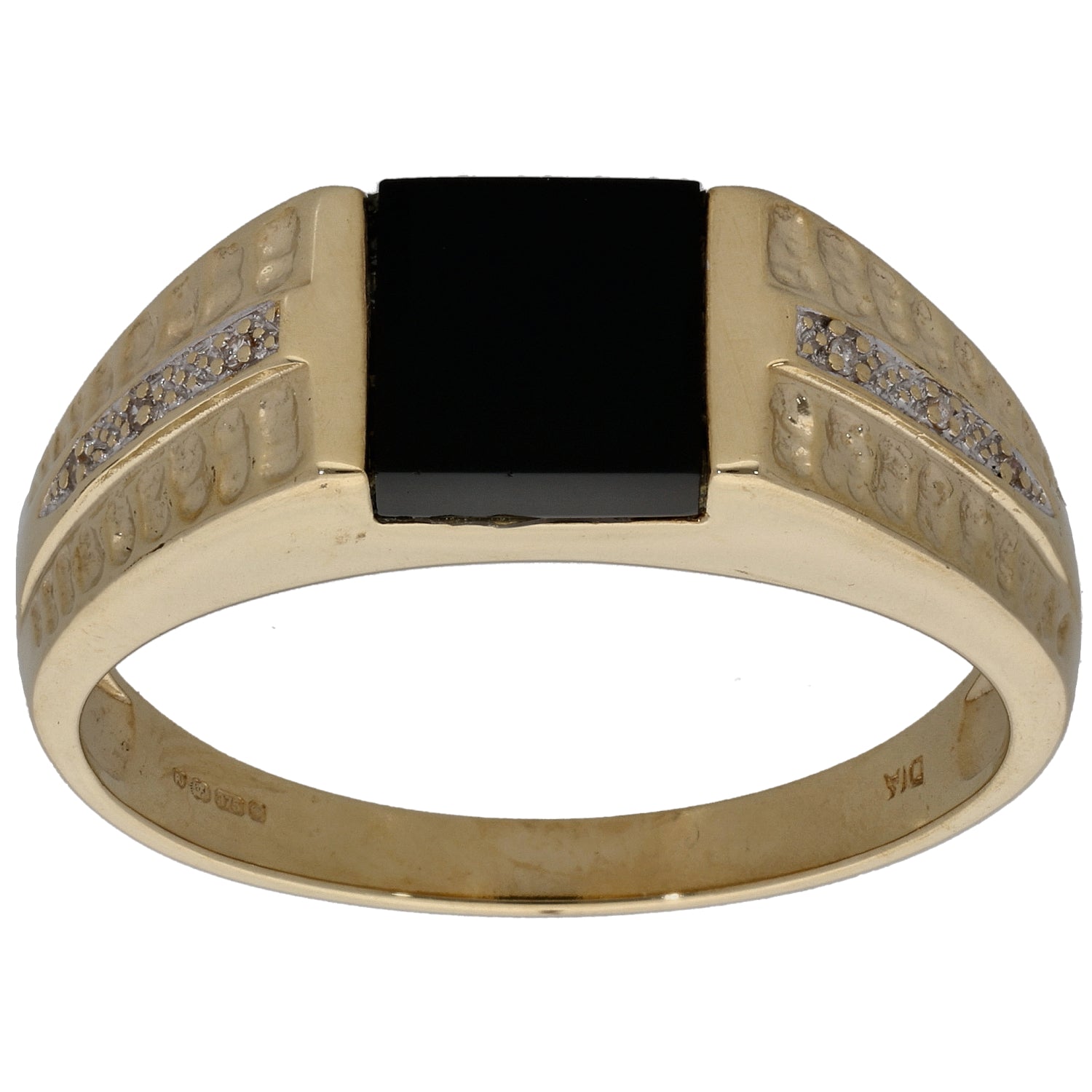 9ct Gold Onyx & 0.01ct Diamond Patterned Signet Ring Size Z+7
