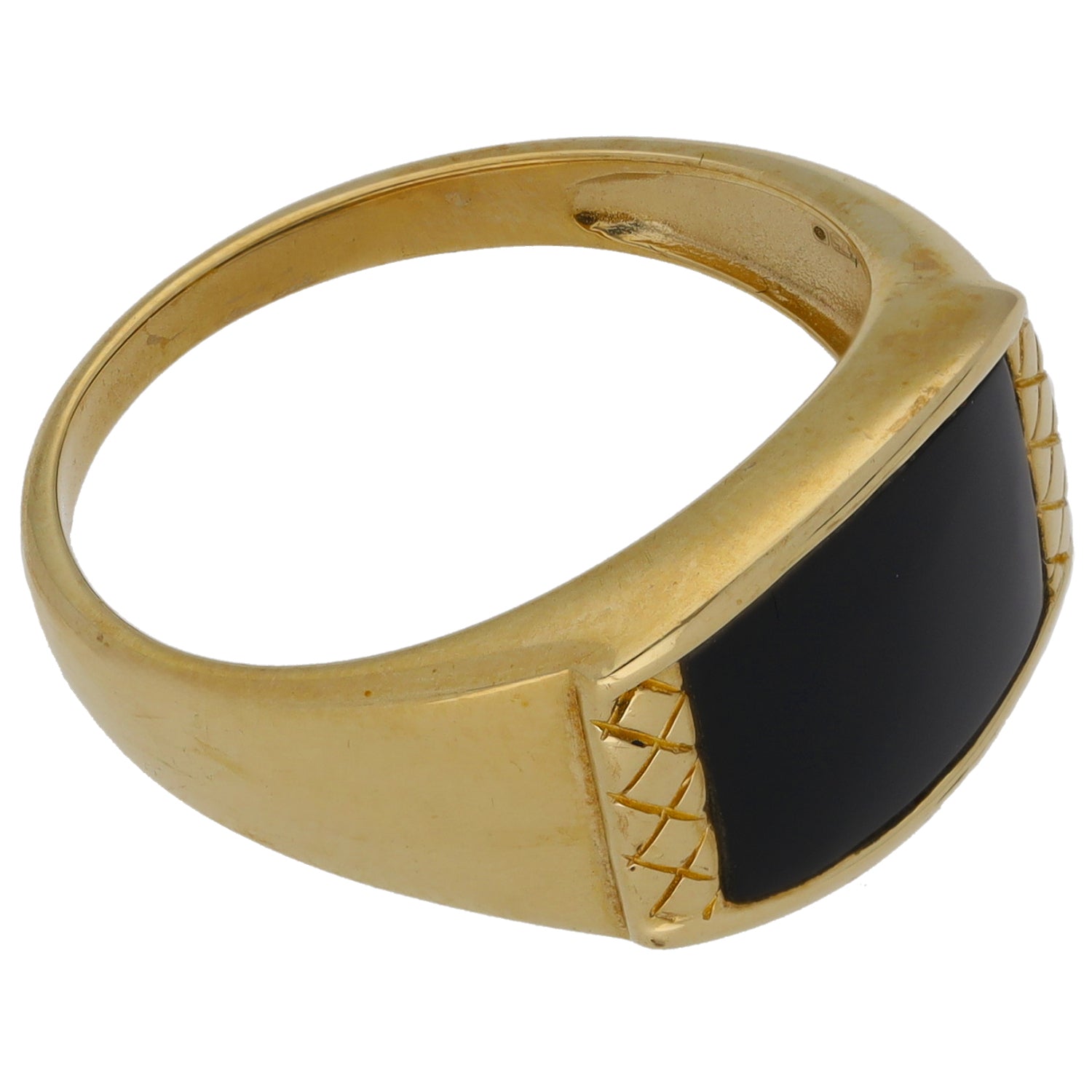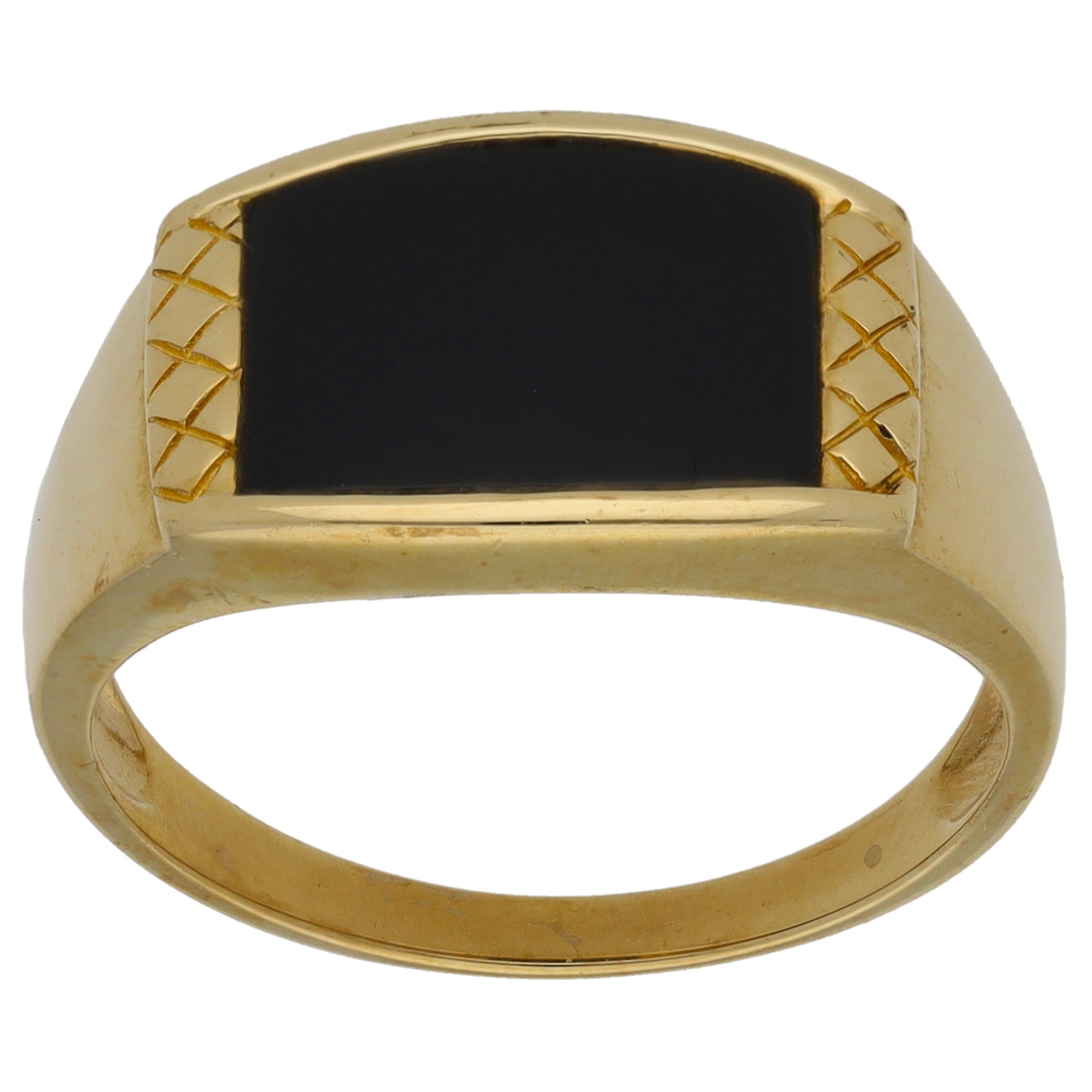9ct Gold Onyx Patterned Single Stone Signet Ring Size R
