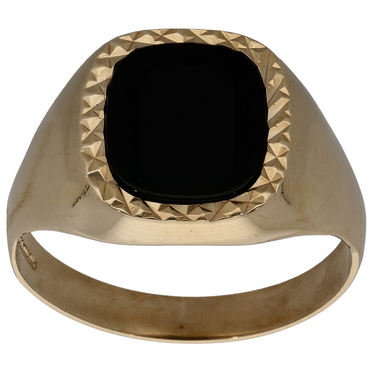 9ct Gold Onyx Patterned Single Stone Signet Ring Size W