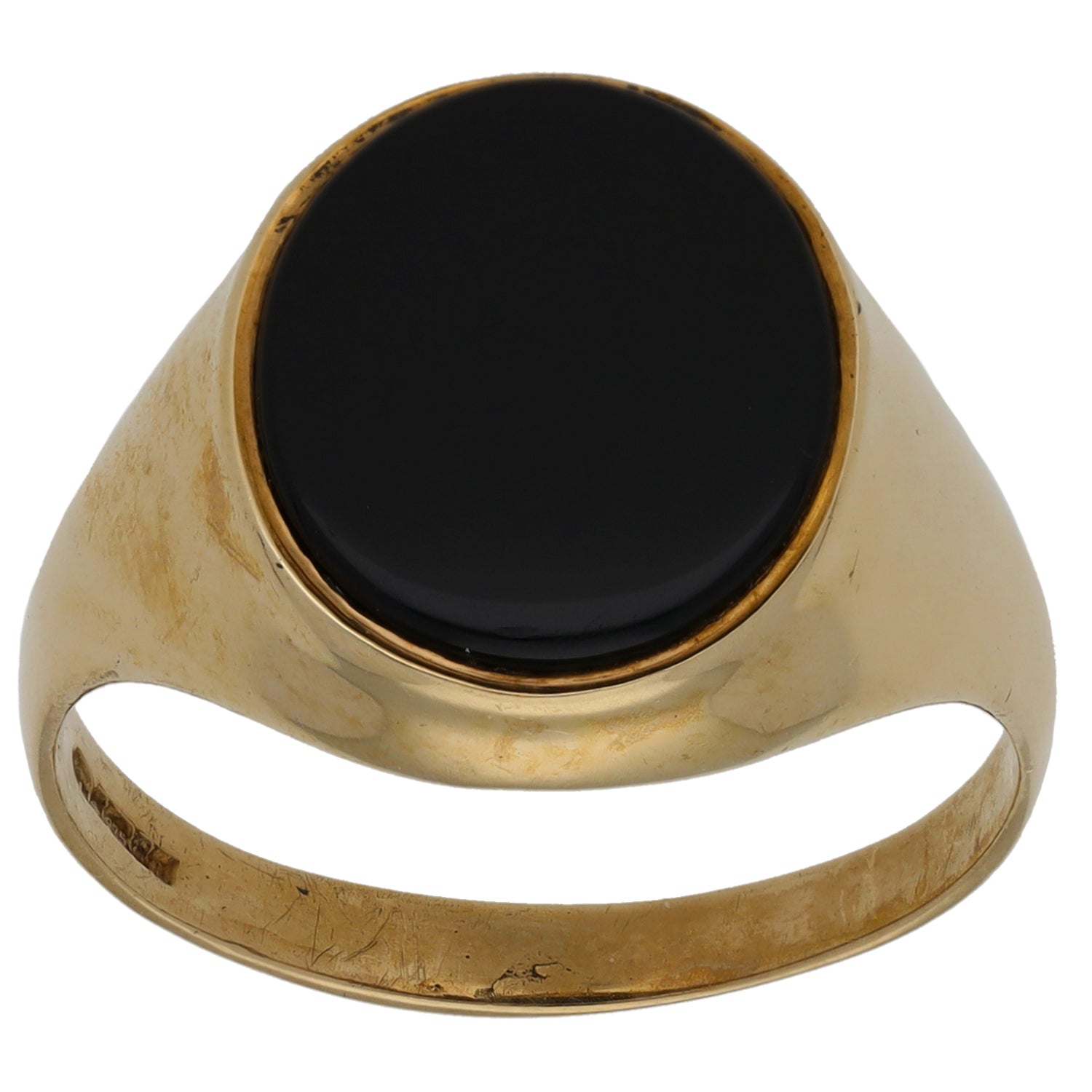 9ct Gold Onyx Single Stone Signet Ring Size T