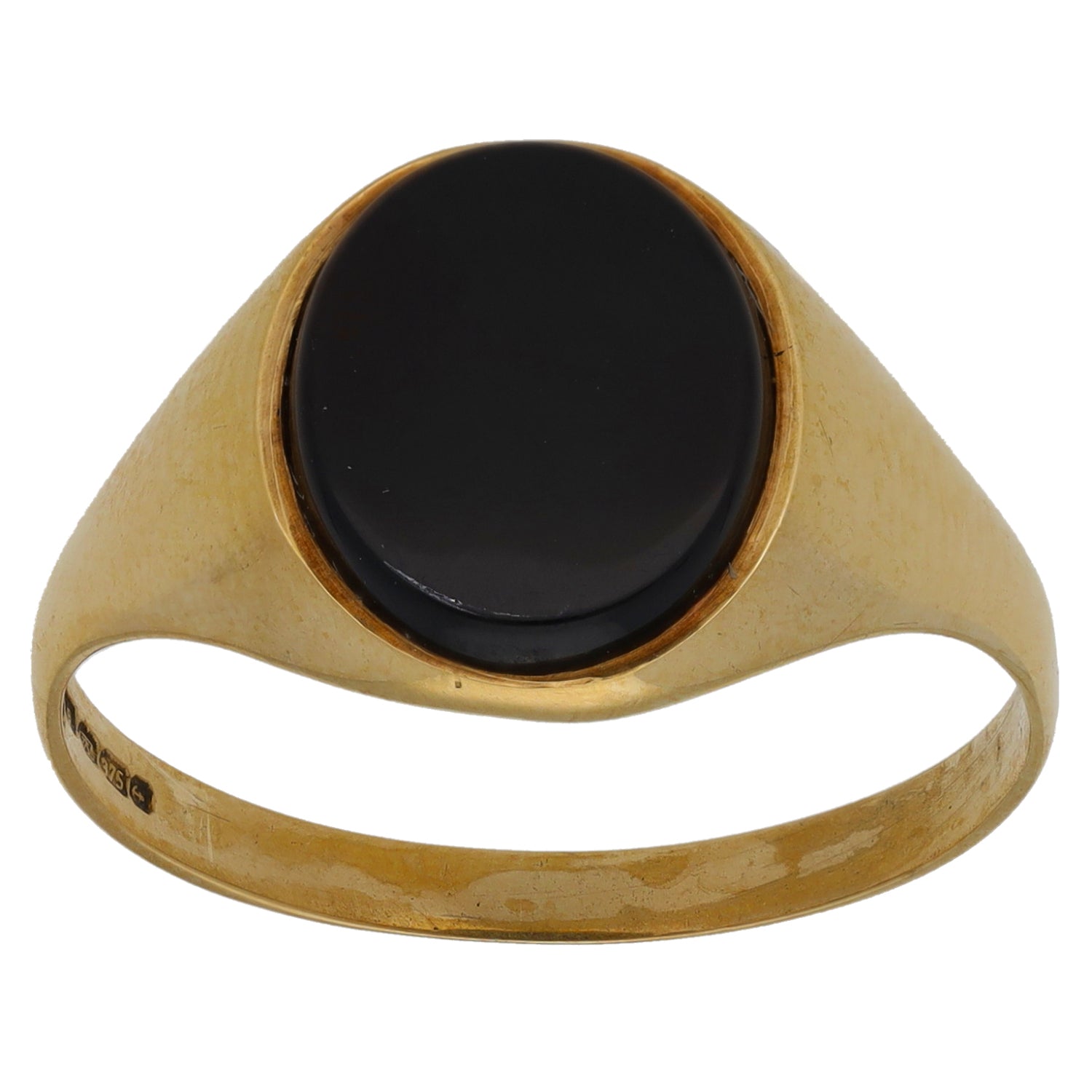 9ct Gold Onyx Plain Single Stone Signet Ring Size T