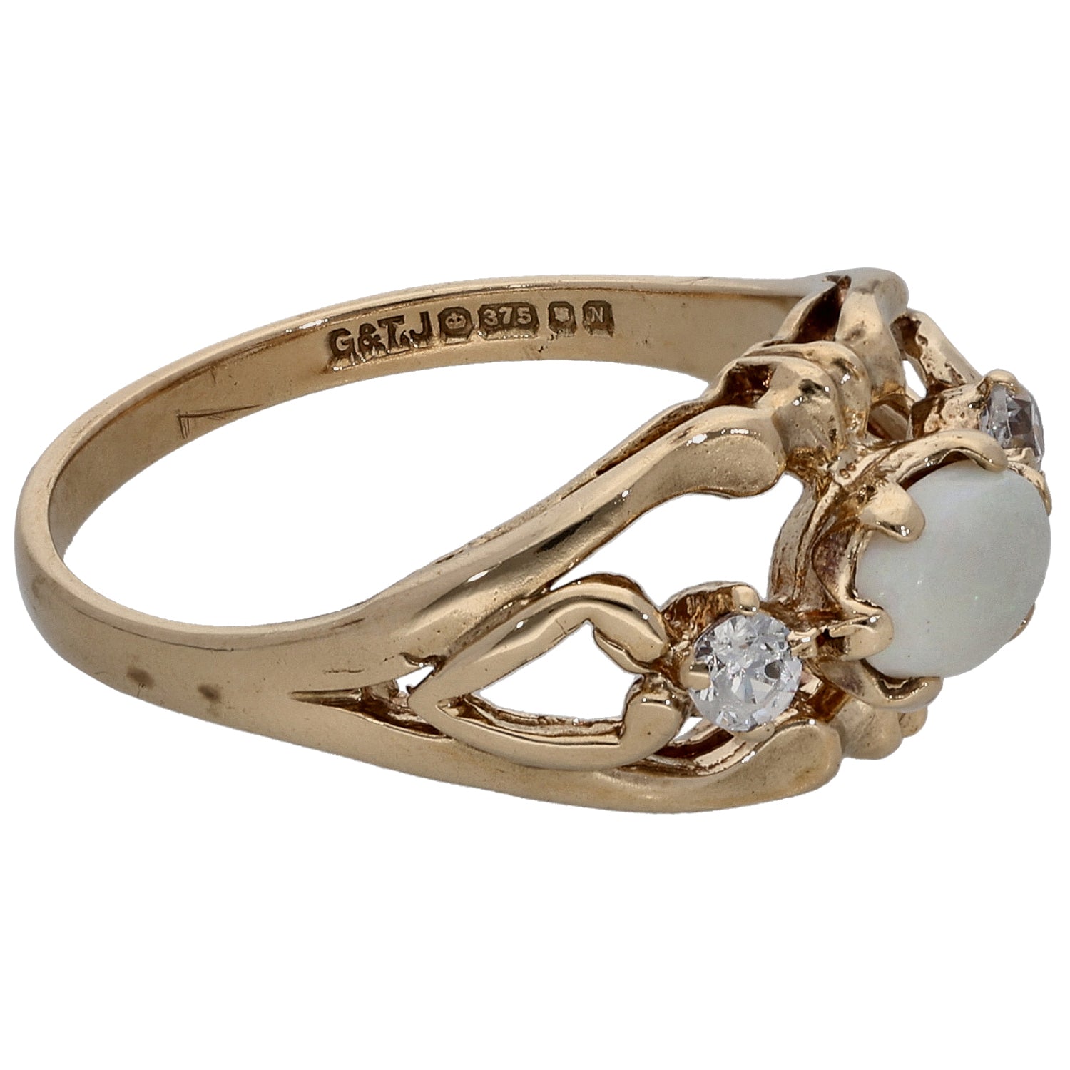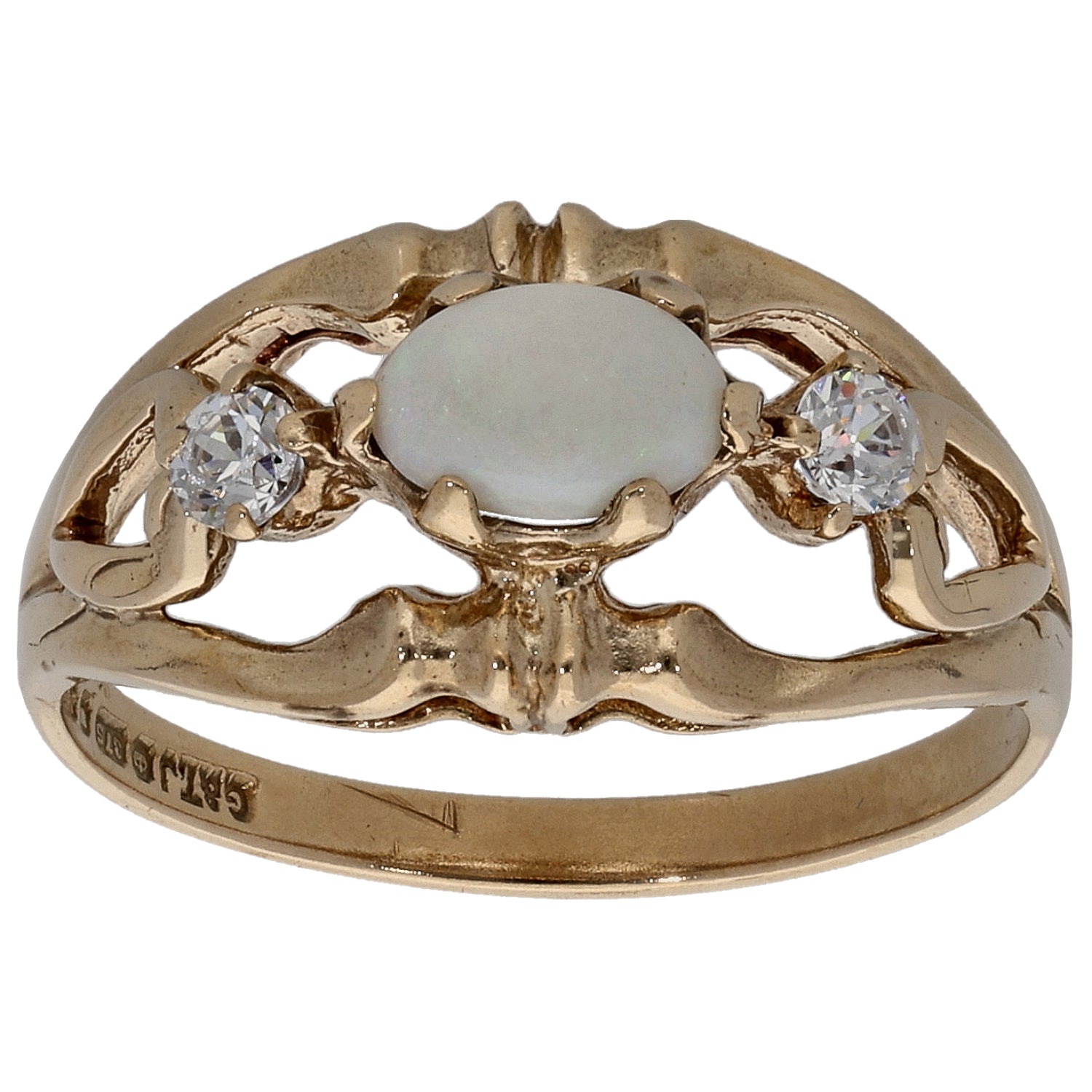 9ct Gold Opal & Cubic Zirconia Trilogy Ring Size L