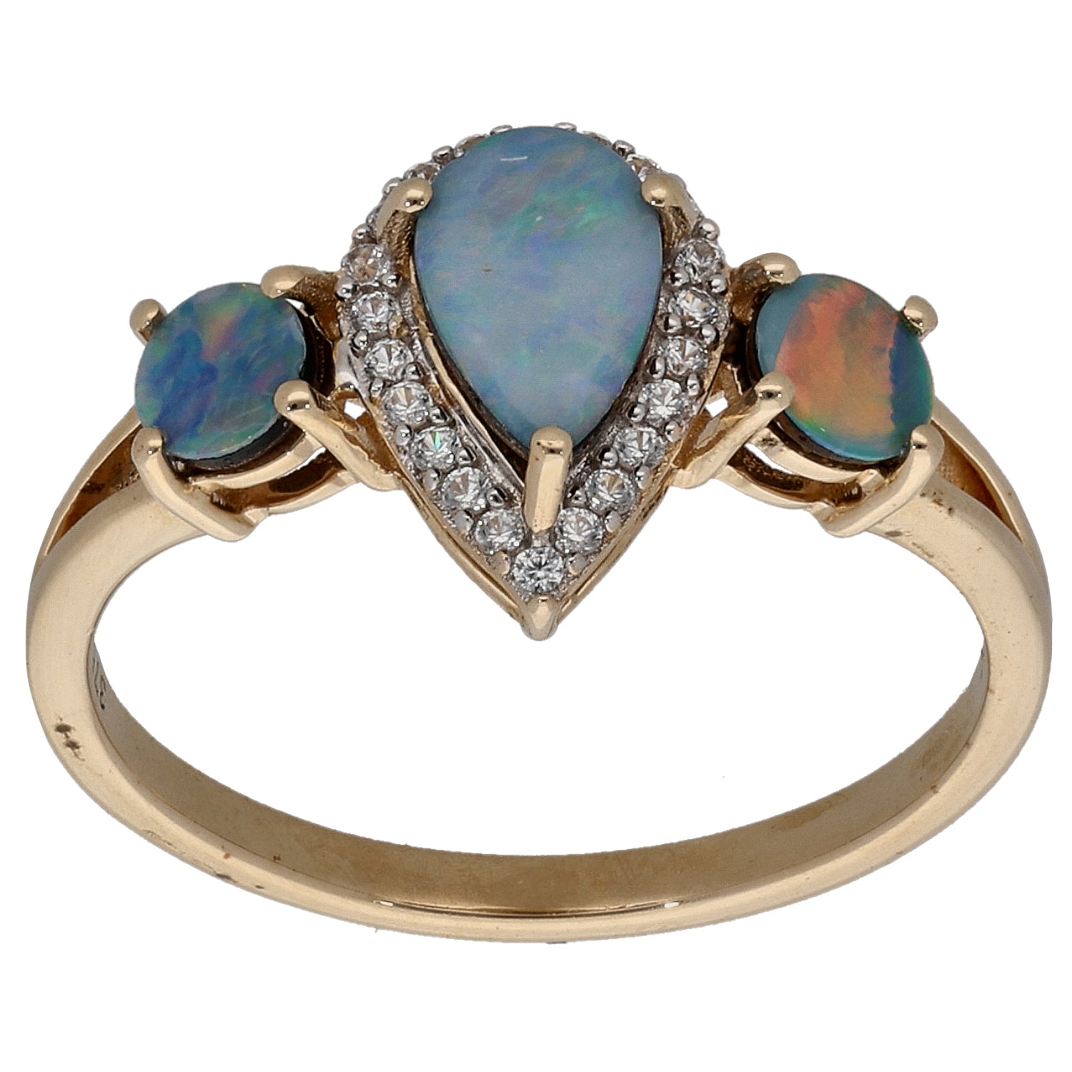 9ct Gold Opal Doublet & Cubic Zirconia Dress/Cocktail Ring Size P