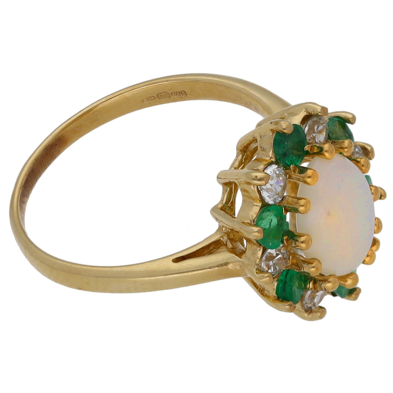 9ct Gold Opal, Emerald & Cubic Zirconia Dress/Cocktail Ring Size K