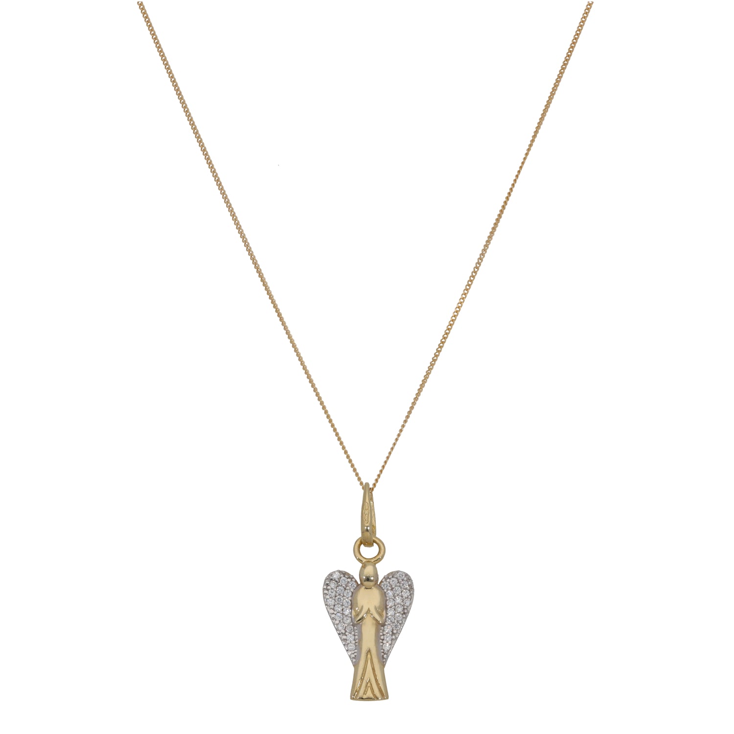 New 9ct Gold Cubic Zirconia Angel Pendant With Chain 18"