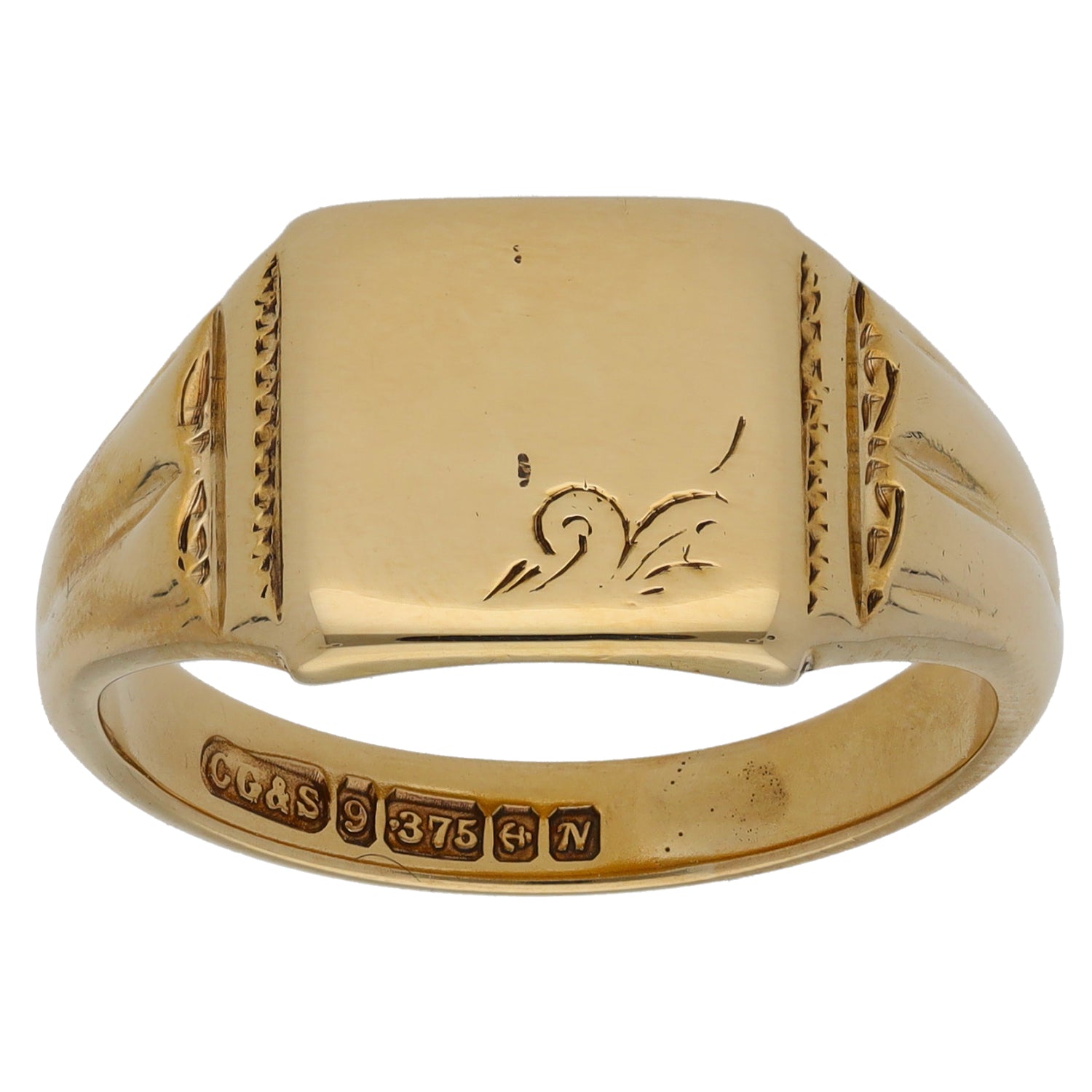 9ct Gold Patterned Signet Ring Size T