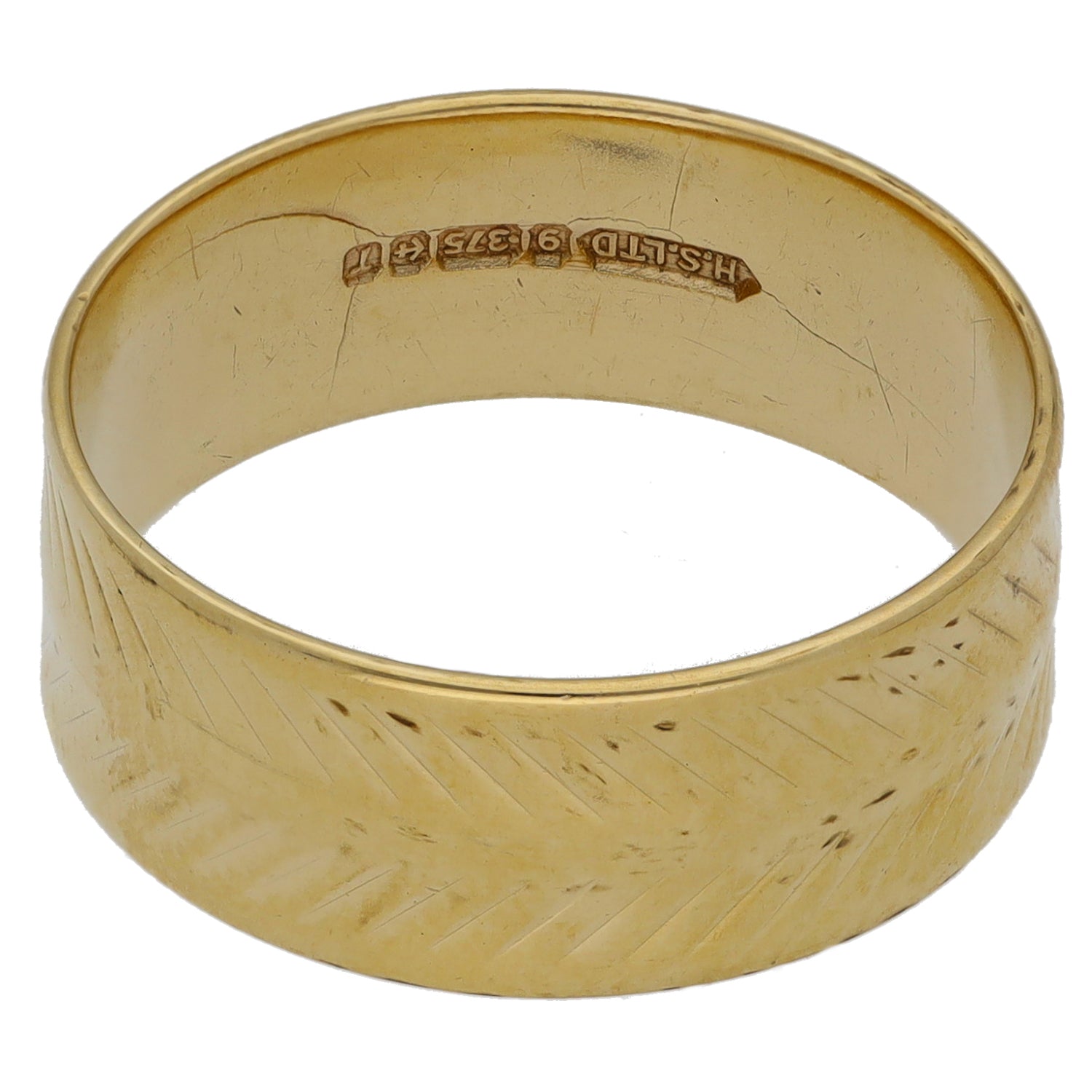 9ct Gold Patterned Wedding Ring Size R