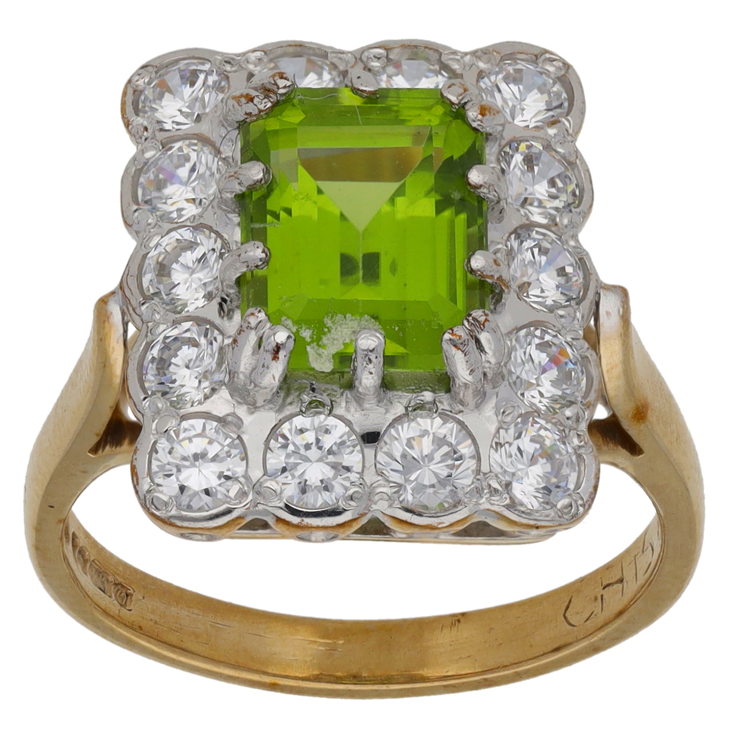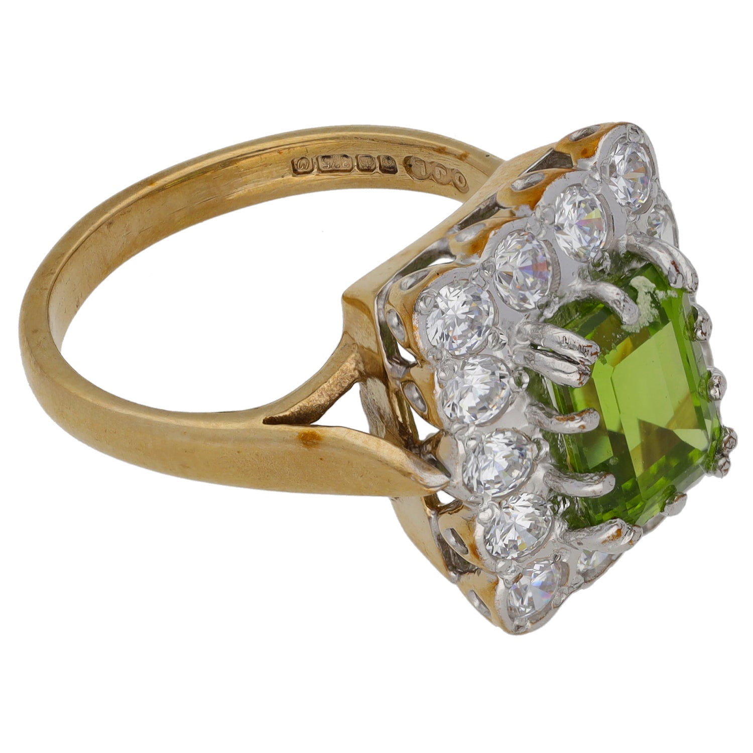 9ct Gold Peridot & Cubic Zirconia Dress/Cocktail Ring Size O