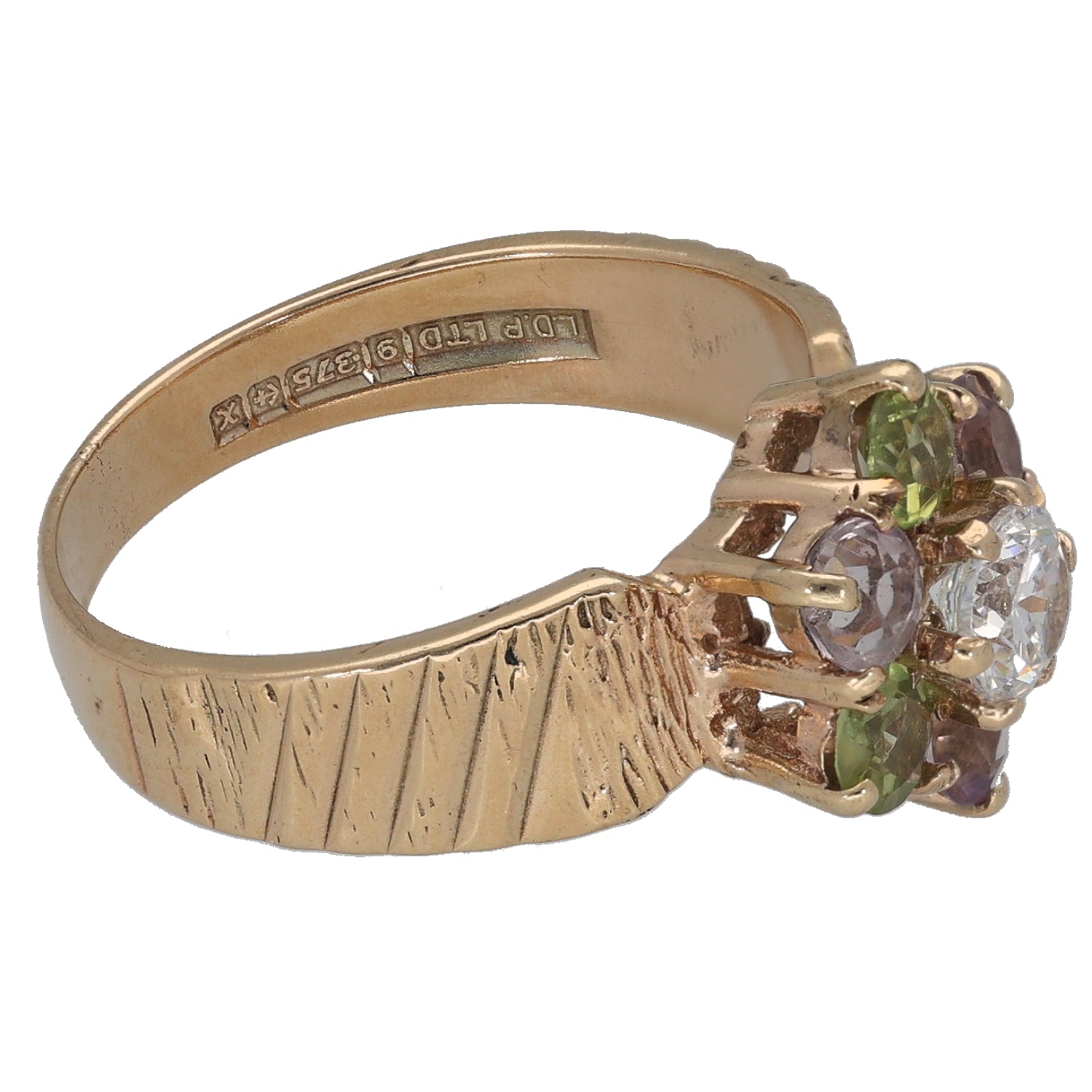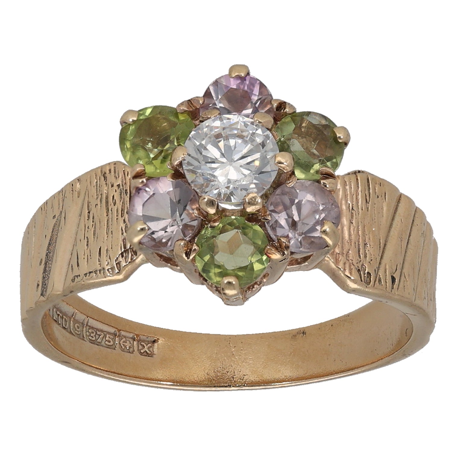 9ct Gold Peridot, Quartz & Cubic Zirconia Dress/Cocktail Ring Size N