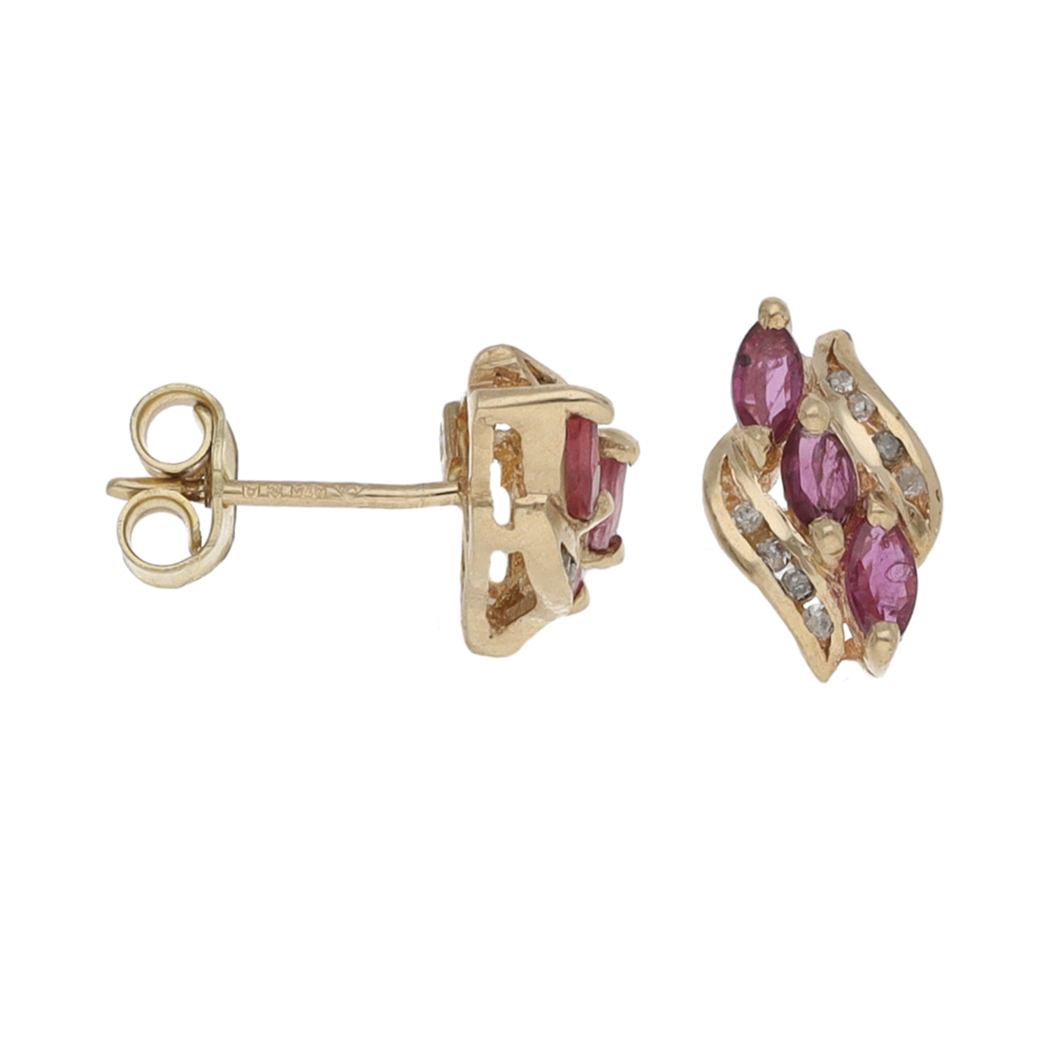 9ct Gold Ruby & 0.16ct Diamond Dress/Cocktail Earrings