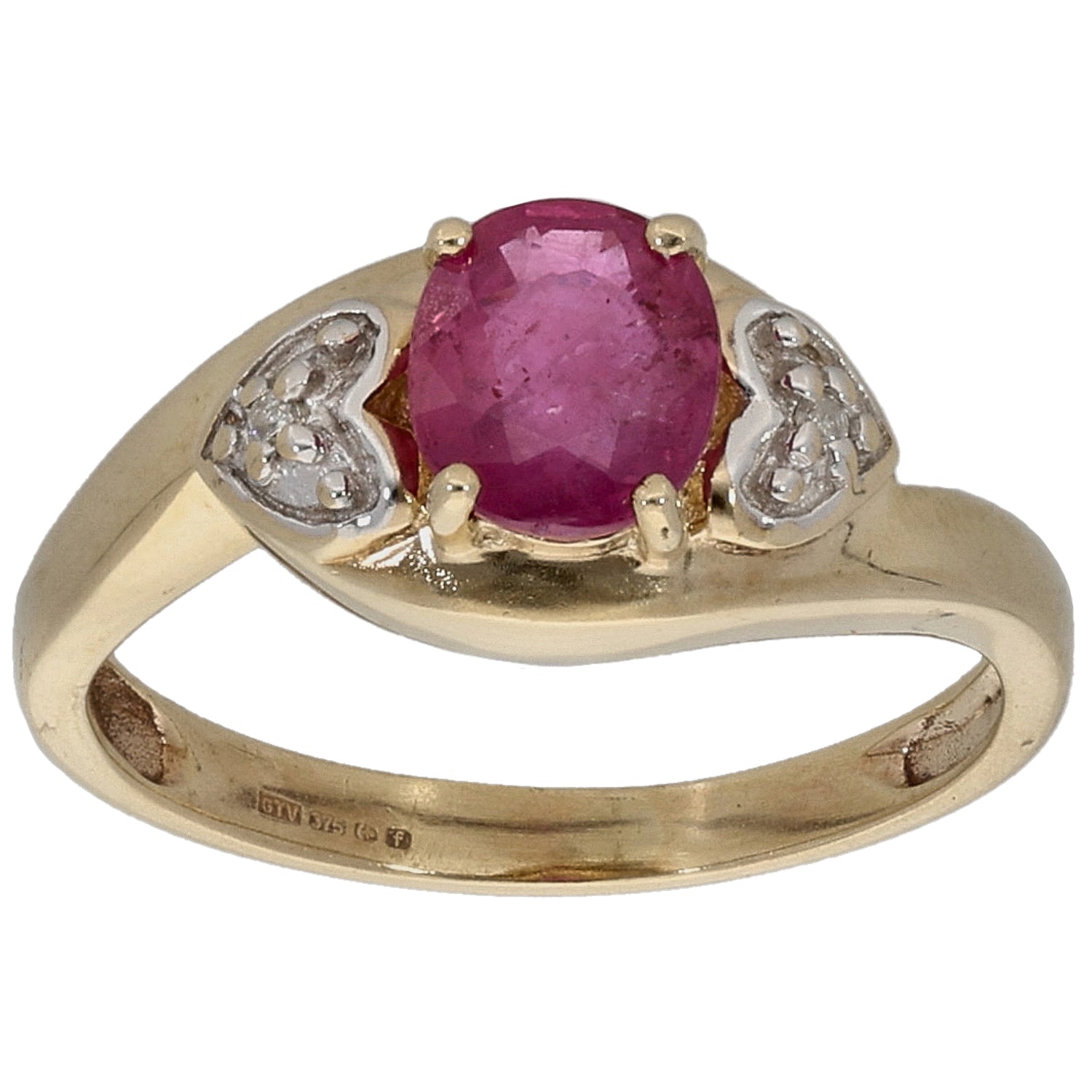 9ct Gold Ruby & 0.01ct Diamond Dress/Cocktail Ring Size L