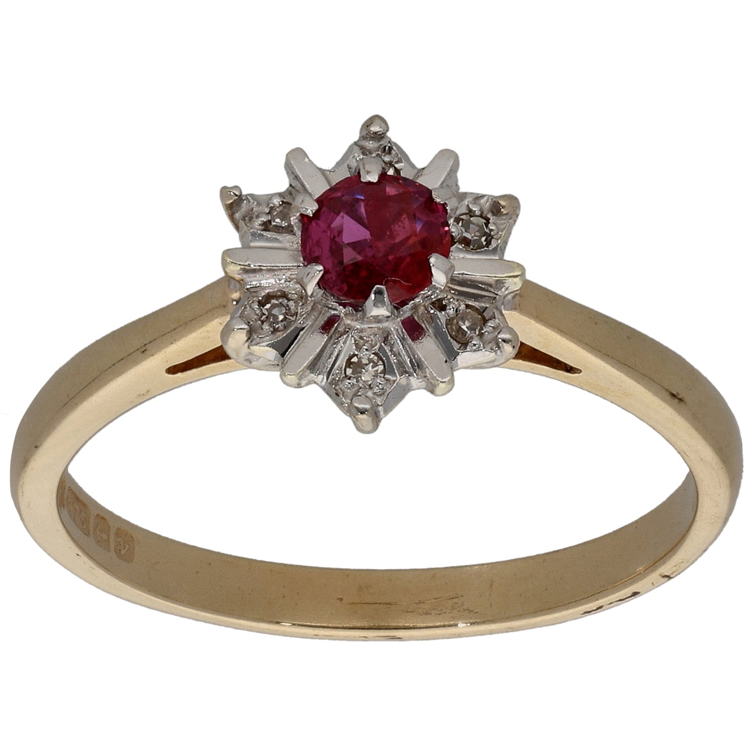 9ct Gold Ruby & 0.03ct Diamond Dress/Cocktail Ring Size M