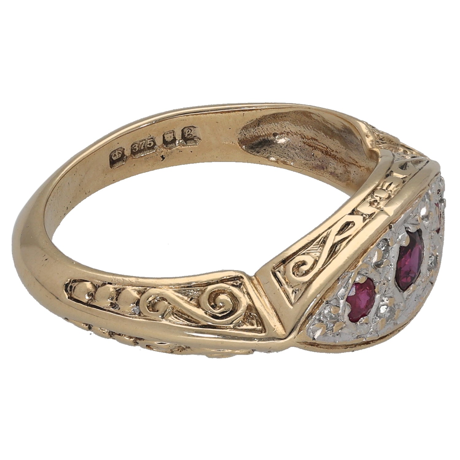 9ct Gold Ruby & 0.06ct Diamond Dress/Cocktail Ring Size N