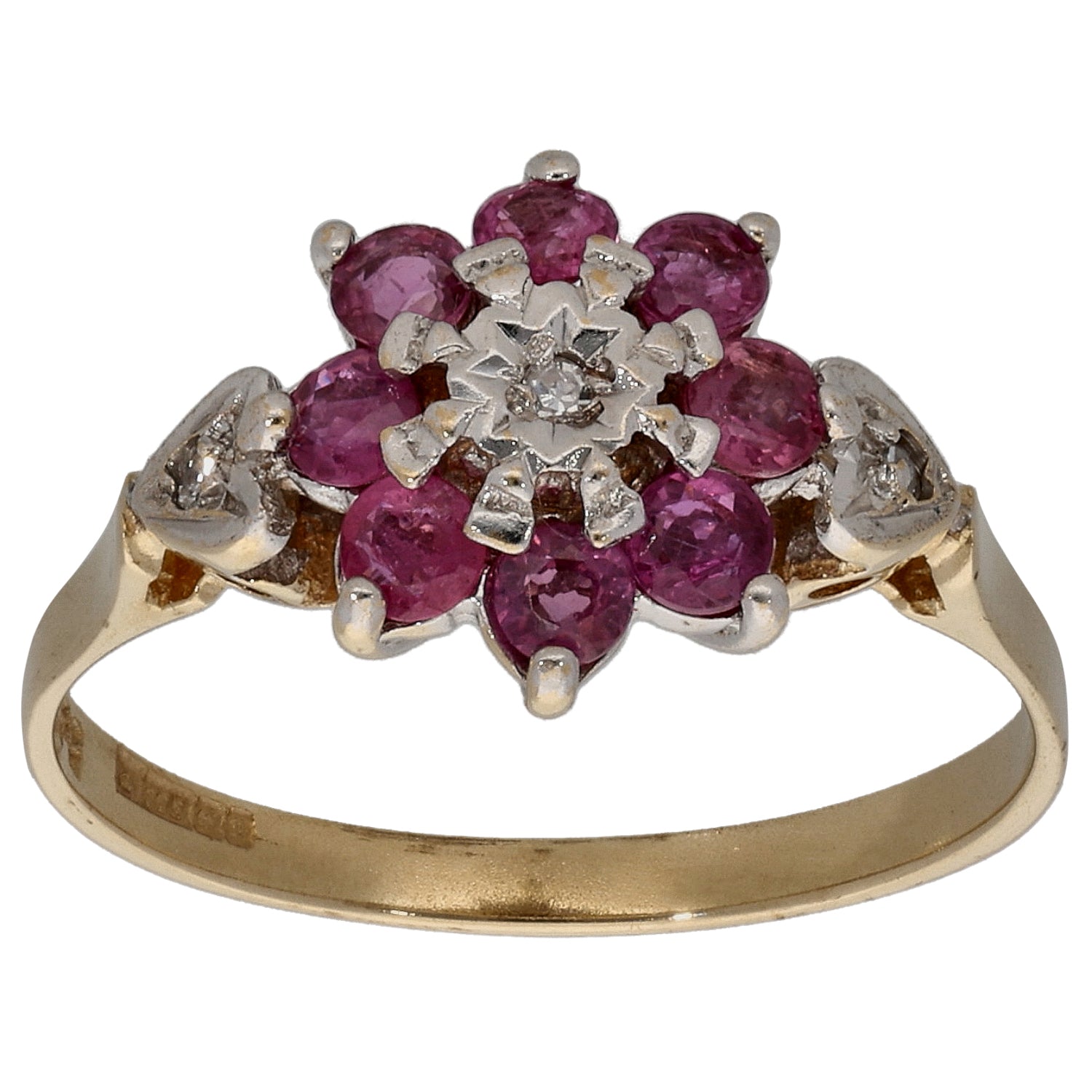 9ct Gold Ruby & 0.03ct Diamond Dress/Cocktail Ring Size N