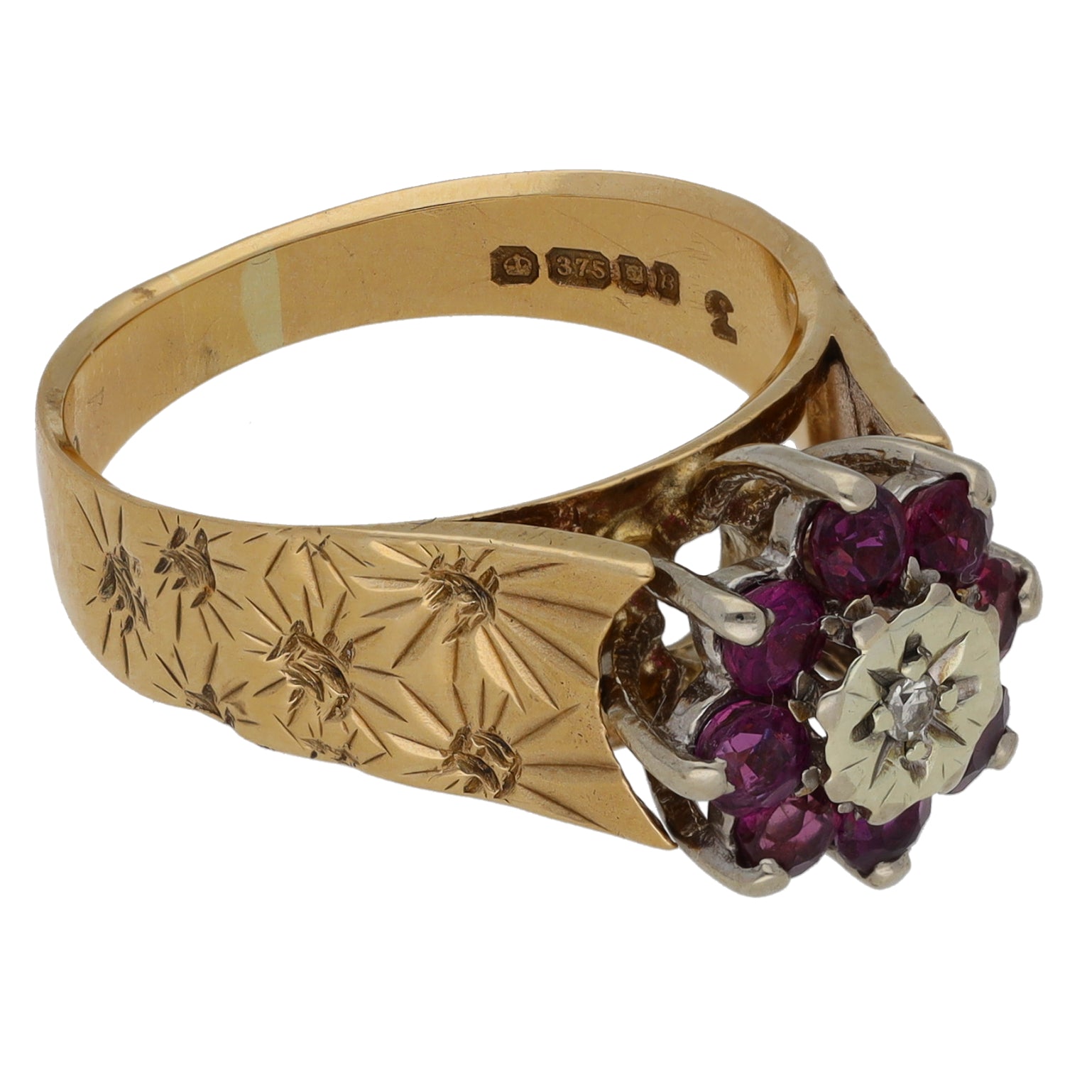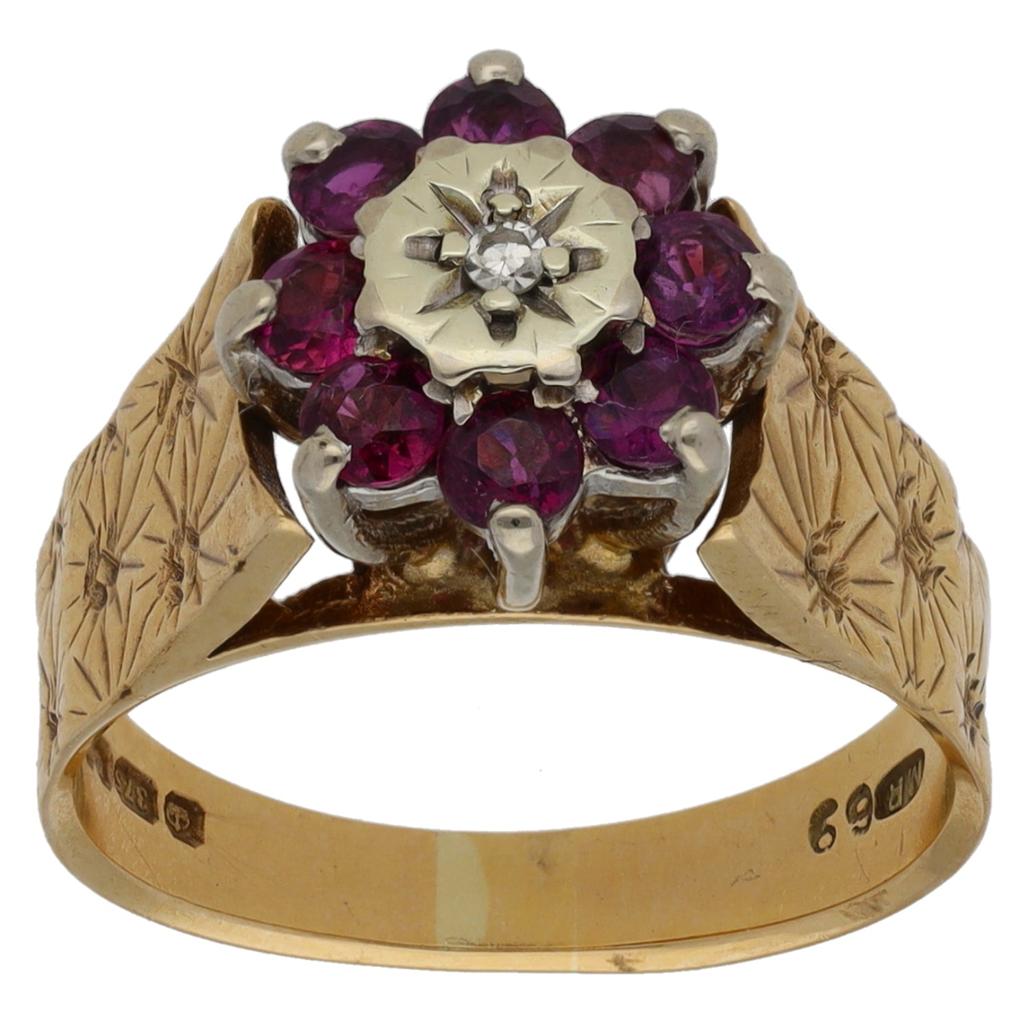 9ct Gold Ruby & 0.07ct Diamond Dress/Cocktail Ring Size M