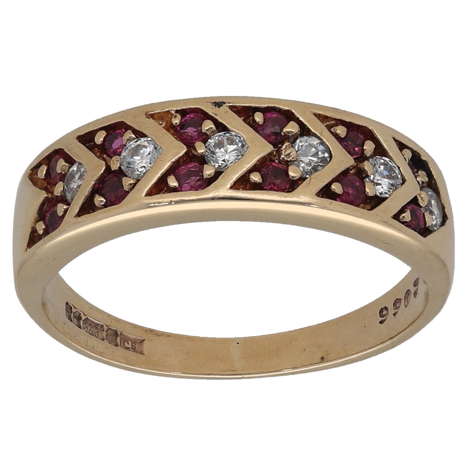 9ct Gold Ruby & Cubic Zirconia Half Eternity Ring Size N