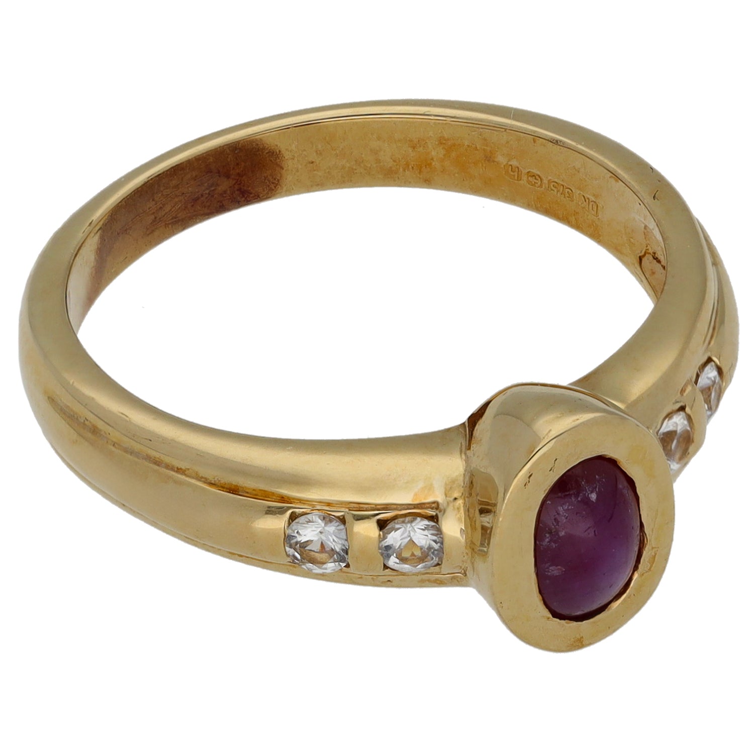 9ct Gold Ruby & Sapphire Single Stone Ring with Accent Stones Size N