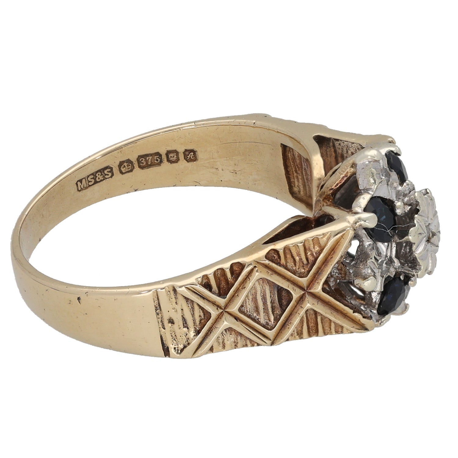9ct Gold Sapphire & 0.05ct Diamond Cluster Ring Size O
