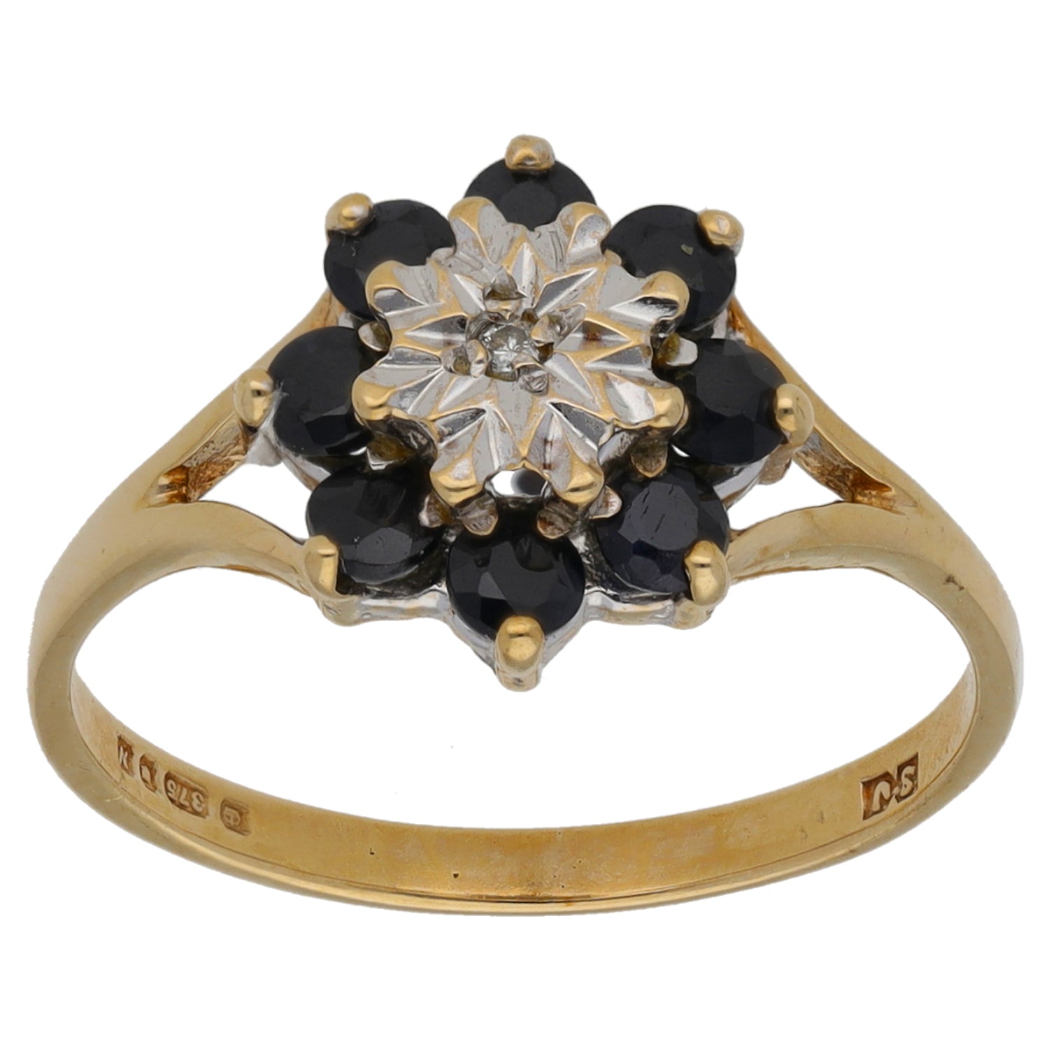 9ct Gold Sapphire & 0.005ct Diamond Dress/Cocktail Ring Size L